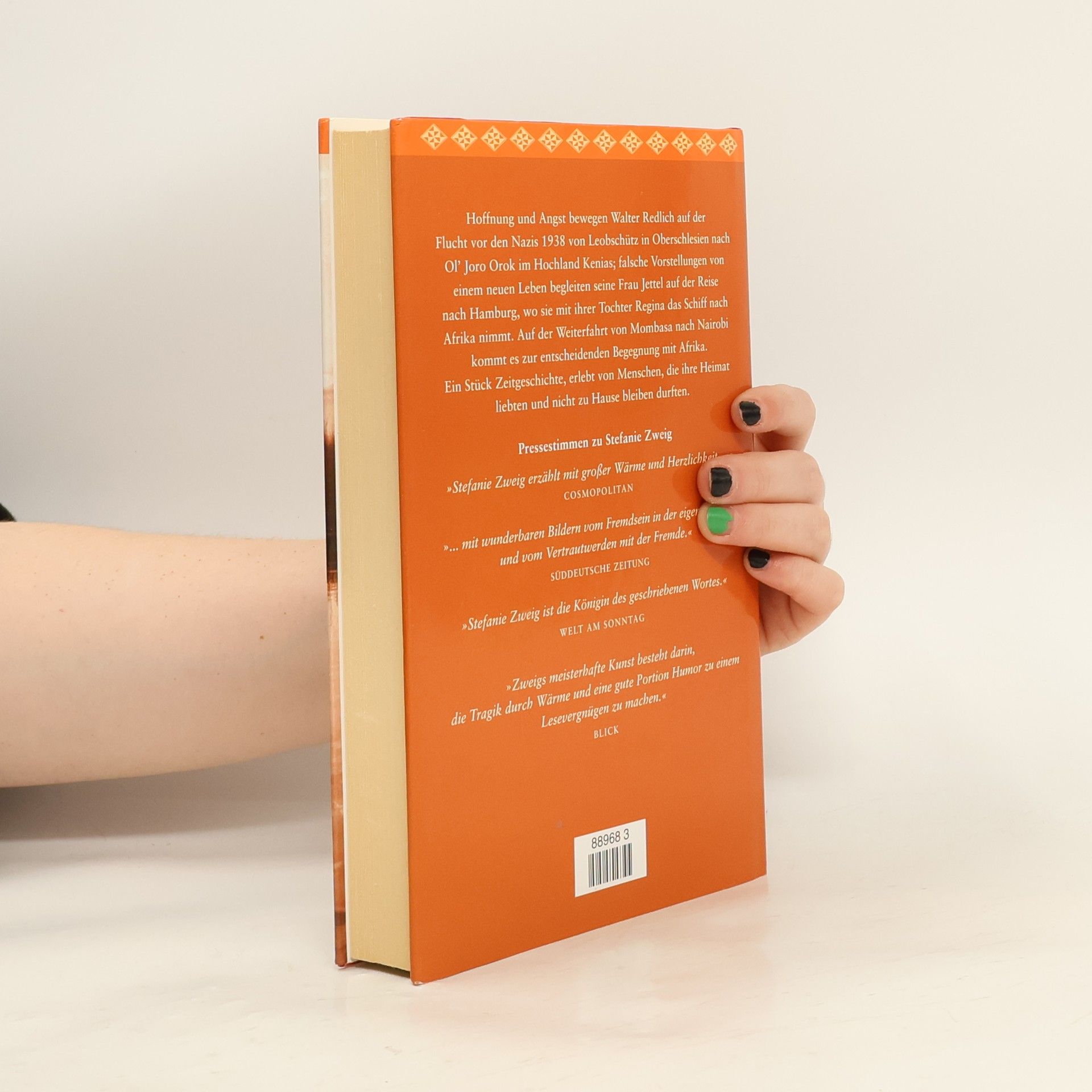 Hoffnung und Angst bewegen den Vater auf der Flucht vor den Nazis 1938 von Leobschütz in Oberschlesien nach Ol` Joro Orok im Hochland Kenias; falsche Vorstellungen von einem neuen Leben begleiten seine Frau Jettel auf der Reise nach Hamburg, wo sie mit ihrer Tochter Regina das Schiff nach Afrika nimmt. Auf der Weiterfahrt von Mombasa nach Nairobi kommt es zur entscheidenen Begegnung mit Afrika. Ein Stück Zeitgeschichte, erlebt von Menschen, die ihre Heimat liebten und nicht zu Hause bleiben durften. Die Schicksalspunkte im Leben der Familie Redlich sind durch Zugfahrten markiert, die der Autorin zum stilistischen Mittel dieses Romans werden. Mit feinen Wahrnehmungen und einer berührenden Vertrautheit gelingt ihr ein zeithistorisch bedeutendes Werk.