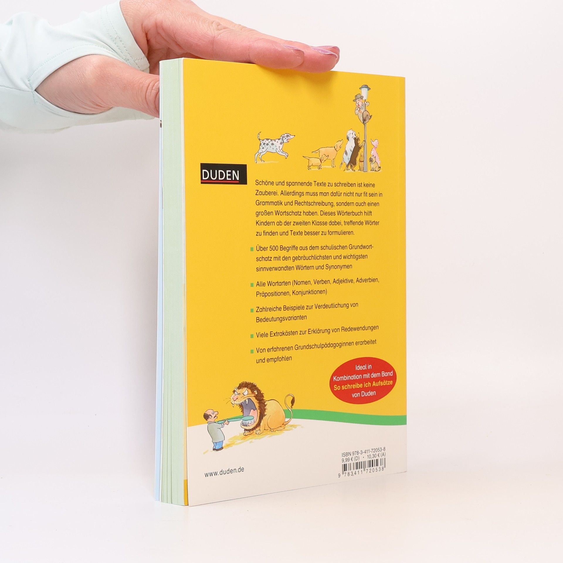 Dieses Synonymwörterbuch für die Grundschule unterstützt Kinder dabei, treffende Wörter zu finden und Texte besser zu formulieren. Es enthält über 500 Begriffe aus dem schulischen Grundwortschatz mit den wichtigsten sinnverwandten Wörtern. Zahlreiche Beispiele helfen, die verschiedenen Wortbedeutungen zu verstehen. Geläufige Redewendungen der deutschen Sprache werden leicht verständlich erklärt. So gelingt jeder Aufsatz! Witzig und liebevoll illustriert lädt dieses Wörterbuch zum Schmökern und Stöbern ein. Die alphabetische Griffleiste hilft bei der Benutzung. Hier findet jedes Kind das passende Wort!