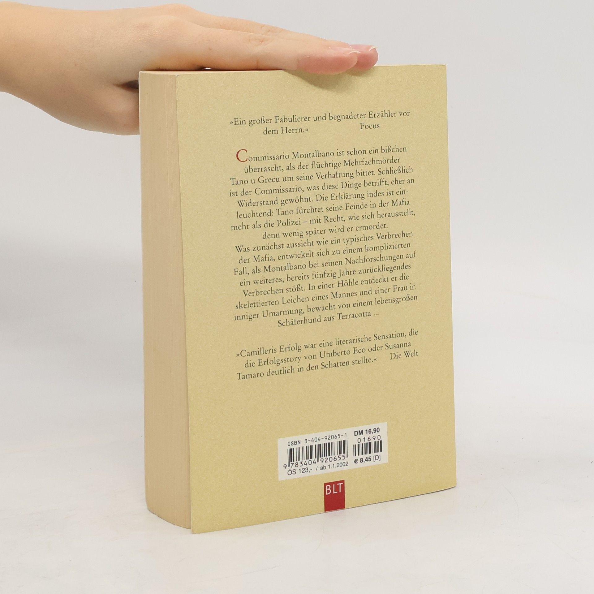 Commissario Montalbano ist schon ein bißchen überrascht, als der flüchtige Mehrfachmörder Tano u Grecu um seine Verhaftung bittet. Schließlich ist der Commissario, was diese Dinge betrifft, eher an Widerstand gewöhnt. Die Erklärung indes ist einleuchtend: Tano fürchtet seine Feinde in der Mafia mehr als die Polizei ? mit Recht, wie sich herausstellt, denn wenig später wird er ermordet. Was zunächst aussieht wie ein typisches Verbrechen der Mafia, entwickelt sich zu einem komplizierten Fall, als Montalbano bei seinen Nachforschungen auf ein weiteres, bereits fünfzig Jahre zurückliegendes Verbrechen stößt. In einer Höhle entdeckt er die skelettierten Leichen eines Mannes und einer Frau in inniger Umarmung, bewacht von einem lebensgroßen Schäferhund aus Terracotta ... Commissario Montalbano löst seinen zweiten Fall.