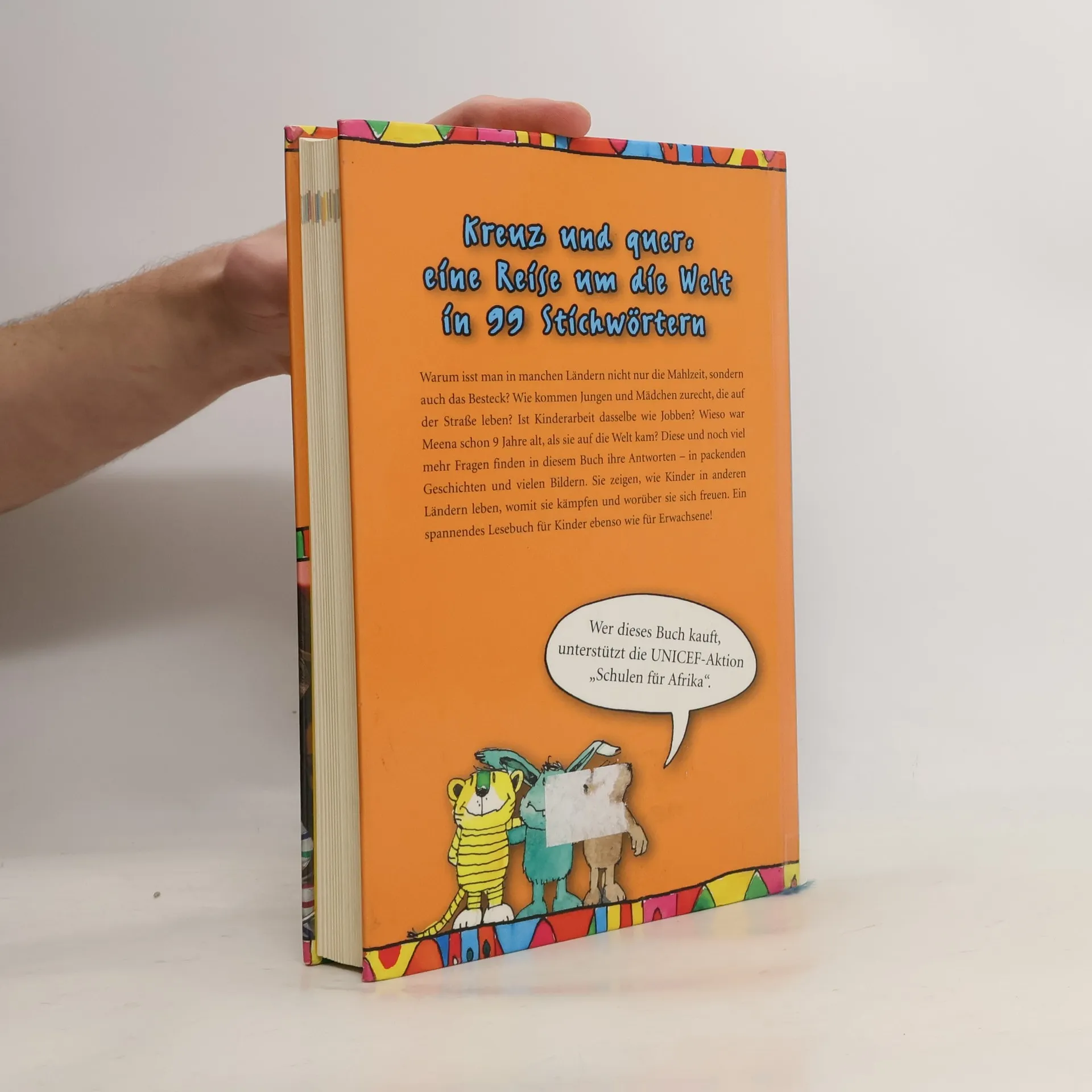 Das große Buch zum 60-jährigen Jubiläum von UNICEF beleuchtet die Lebensrealitäten von Kindern weltweit und beantwortet Fragen, die Erwachsenen oft nicht in den Sinn kommen. Es bietet Einblicke in den Alltag von Kindern in verschiedenen Ländern, illustriert von Janosch und ergänzt durch zahlreiche Farbfotos. Leser erfahren, was Kinder in Afghanistan oder Lesotho spielen, wie Waisenkinder in Uganda leben oder wie sich Kinderarbeit von einem normalen Job unterscheidet. Die 99 Stichwörter bringen jungen Lesern und ihren Eltern den Alltag von Kindern in fernen Ländern näher. Sie lernen die Herausforderungen kennen, mit denen Kinder konfrontiert sind, was ihnen Freude bereitet, und was sie opfern müssen. Geschichten wie die von Ali aus Äthiopien, der mit 14 Jahren Soldat wurde, um Essen zu bekommen, oder Yasemine aus Afghanistan, die sich heimlich das Lesen und Schreiben beigebracht hat, zeigen die Vielfalt der Erfahrungen. Zudem wird die Bedeutung von Hygiene in vielen Ländern thematisiert und die inspirierende Geschichte von Nana Yaa aus Leverkusen, die als UNICEF-Juniorbotschafterin Tsunami-Opfern half. Dieses Buch ist spannend und bietet viel Stoff zum Nachdenken und Wiederentdecken.