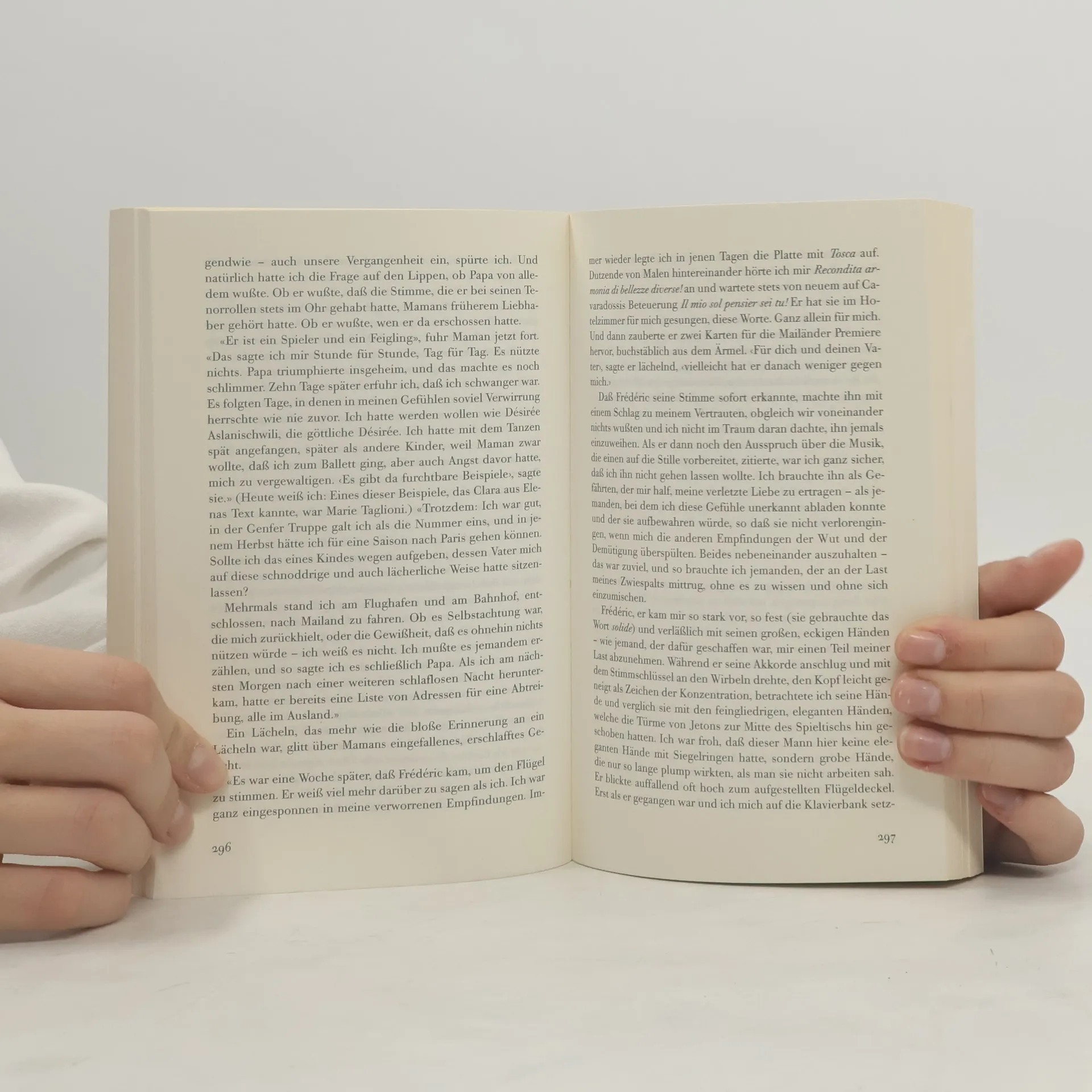 Ein berühmter italienischer Tenor wird während der Aufführung von Puccinis „Tosca“ auf offener Bühne erschossen. Die Kinder des Täters, die Zwillinge Patrice und Patricia, reisen nach Berlin, um zu verstehen, wie es zu dieser Tat kommen konnte. Schicht für Schicht legen sie die Beweggründe frei, die ihren Vater, einen legendären Klavierstimmer und glücklosen Opernkomponisten, zur Waffe greifen ließen. Jahre zuvor waren sie vor ihrer inzestuösen Liebe in verschiedene Hemisphären geflohen. Ihr Wiedersehen und die zunächst unbegreifliche Tat des Vaters führen dazu, daß sie ihre Sprachlosigkeit beenden und aufschreiben, wie sie ihre einstige Intimität erlebt haben. Ein befreiender Prozeß des Erinnerns beginnt.