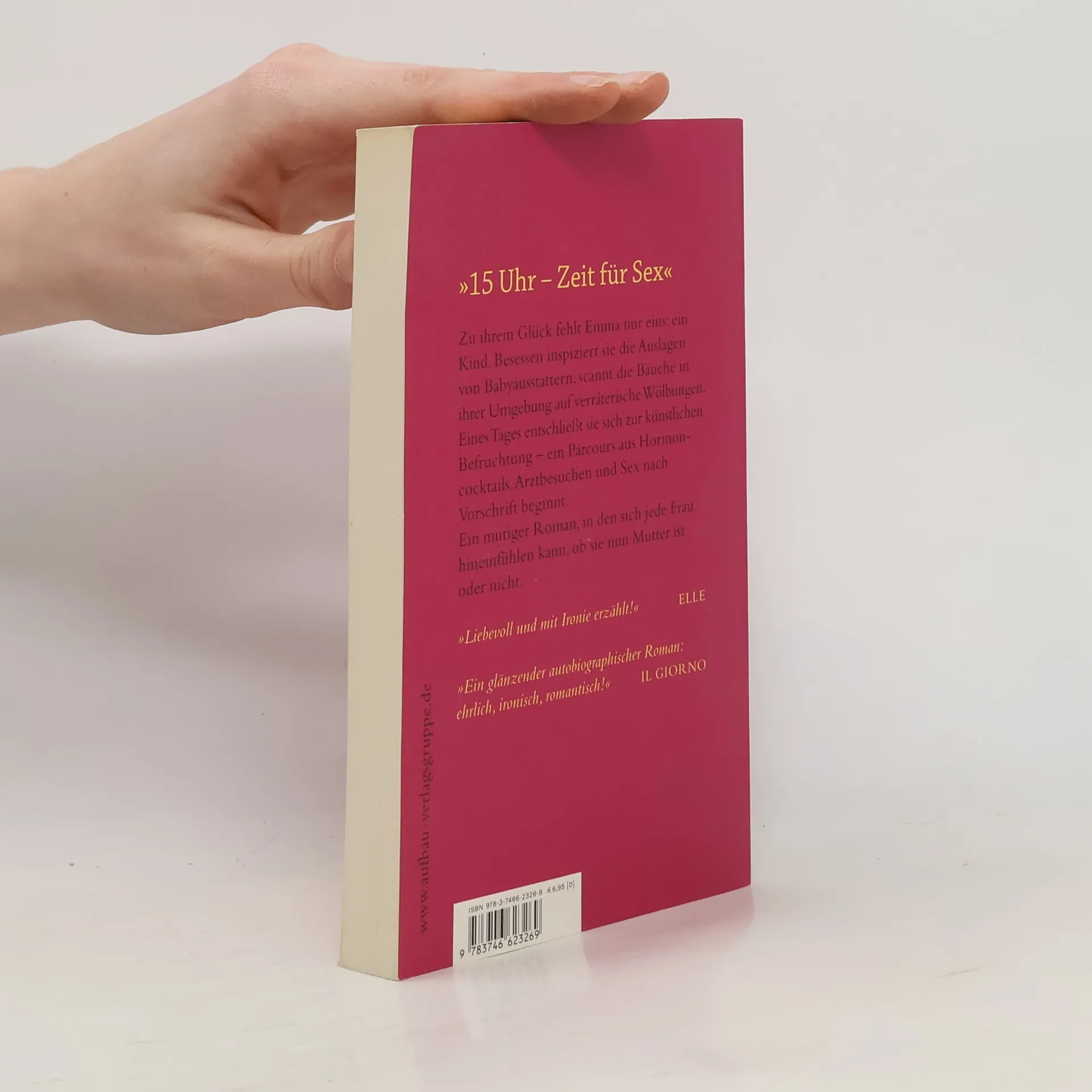 "15 Uhr - Zeit für Sex" Zu ihrem Glück fehlt Emma nur eins: ein Kind. Besessen inspiziert sie die Auslagen von Babyausstattern, scannt die Bäuche in ihrer Umgebung auf verräterische Wölbungen. Eines Tages entschließt sie sich zur künstlichen Befruchtung - ein Parcours aus Hormoncocktails, Arztbesuchen und Sex nach Vorschrift beginnt. Ein mutiger Roman, in den sich jede Frau hineinfühlen kann, ob sie nun Mutter ist oder nicht.