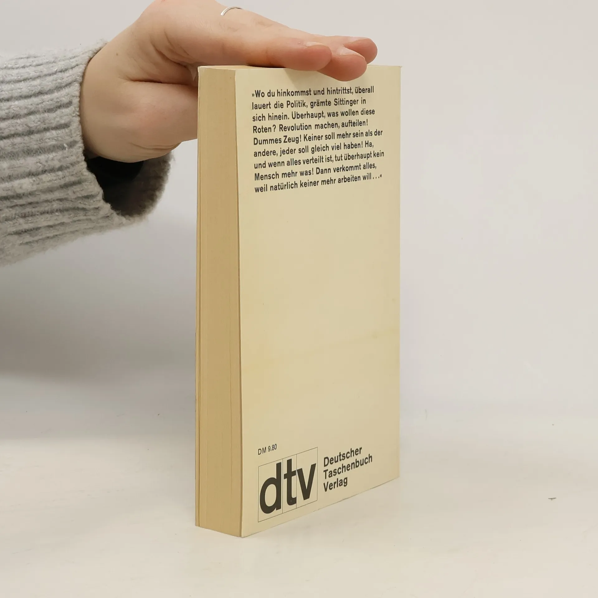 Der kleinbürgerliche Münchner Postinspektor Anton Sittinger liest nur philosophische Bücher wie Nietzsche und Schopenhauer und hält sich für unpolitisch. Der brave Beamte hält sich mit seiner Frau Malwine aus allen politischen Wirren heraus; vor den Kämpfen der Revolution fliehen sie gar aufs Land. Doch auch hier macht sich während der Weimarer Republik das braune Gedankengut der Nationalsozialisten breit. Um später „auf der richtigen Seite“ zu stehen, lässt Malwine ihren Mann heimlich als NSDAP-Mitglied eintragen.Oskar Maria Graf untertitelte sein Werk als „Satirischer Roman“, obwohl es bereits politische Wirklichkeit war. Vorausschauend zeigte Graf das Paradebeispiel eines angepassten Mitläufers, er „Menschen wie Sittinger gibt es in allen Ländern Abertausende".