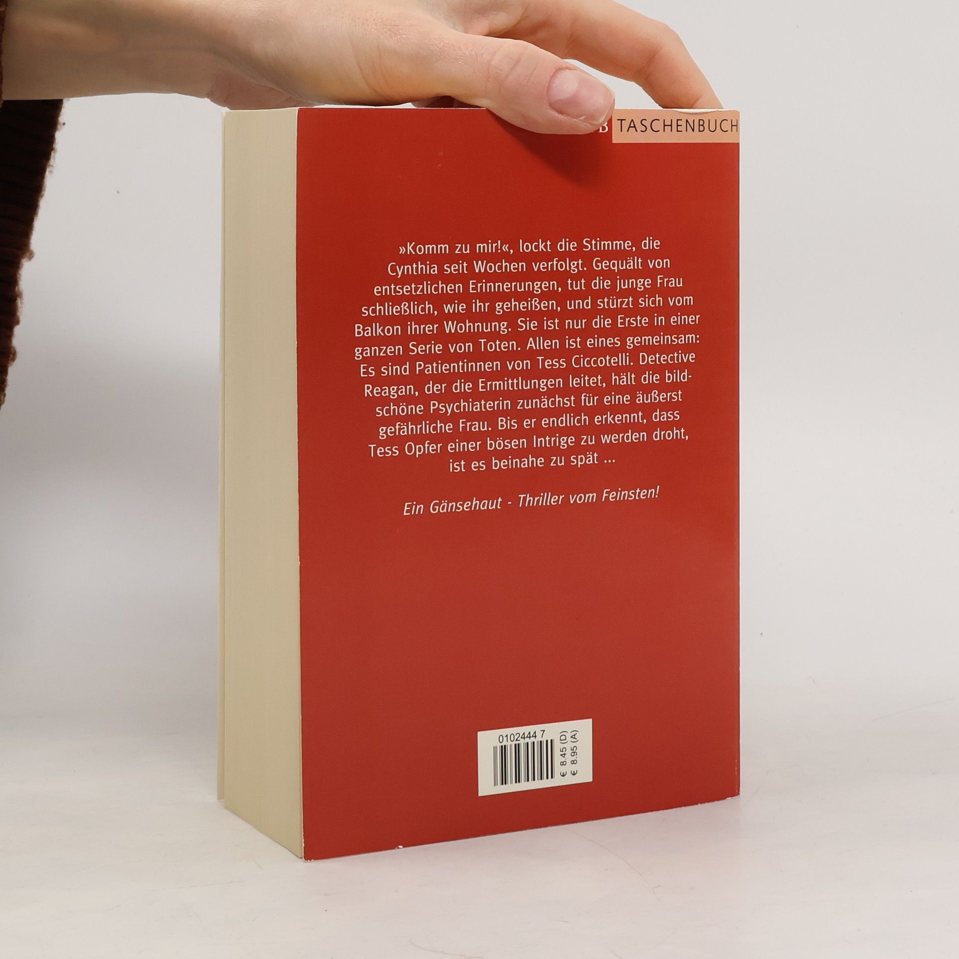 »Sexy und spannend vom Anfang bis zum Schluss!« »Komm zu mir!«, lockt die Stimme, die Cynthia seit Wochen verfolgt. Gequält von entsetzlichen Erinnerungen, tut die junge Frau schließlich, wie ihr geheißen, und stürzt sich vom Balkon ihrer Wohnung. Sie ist nur die Erste in einer ganzen Serie von Toten. Allen ist eines gemeinsam: Es sind Patientinnen von Tess Ciccotelli. Detective Reagan, der die Ermittlungen leitet, hält die bildschöne Psychiaterin zunächst für eine äußerst gefährliche Frau. Bis er endlich erkennt, dass Tess Opfer einer bösen Intrige zu werden droht, ist es beinahe zu spät ...