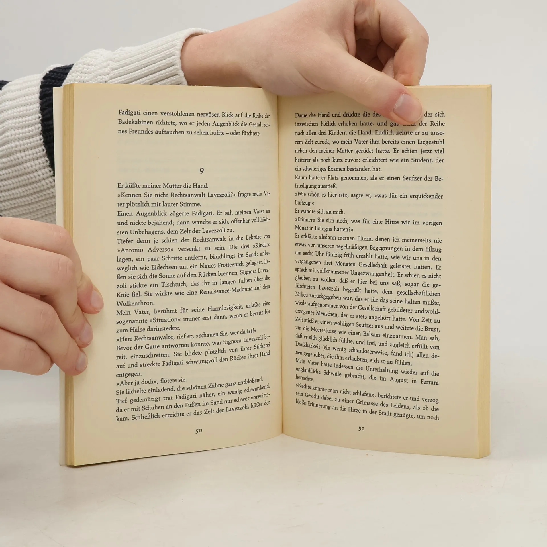 Ein genau gezeichnetes Portrait der guten Gesellschaft und wie sie ihr Fähnchen in den Wind hängt. Er ist allseits beliebt, seine Praxis modern und elegant eingerichtet. Dennoch behandelt er auch weniger vermögende Patienten zu einem moderaten Honorar. Doktor Fadigati genießt hohes Ansehen in der besseren Gesellschaft Ferraras. Nur dass er immer noch nicht verheiratet ist, kann keiner verstehen. Gerüchten, er sei dem eigenen Geschlecht zugetan, wird gnädig begegnet, solange Fadigati die Fassade der Wohlanständigkeit aufrechterhält.