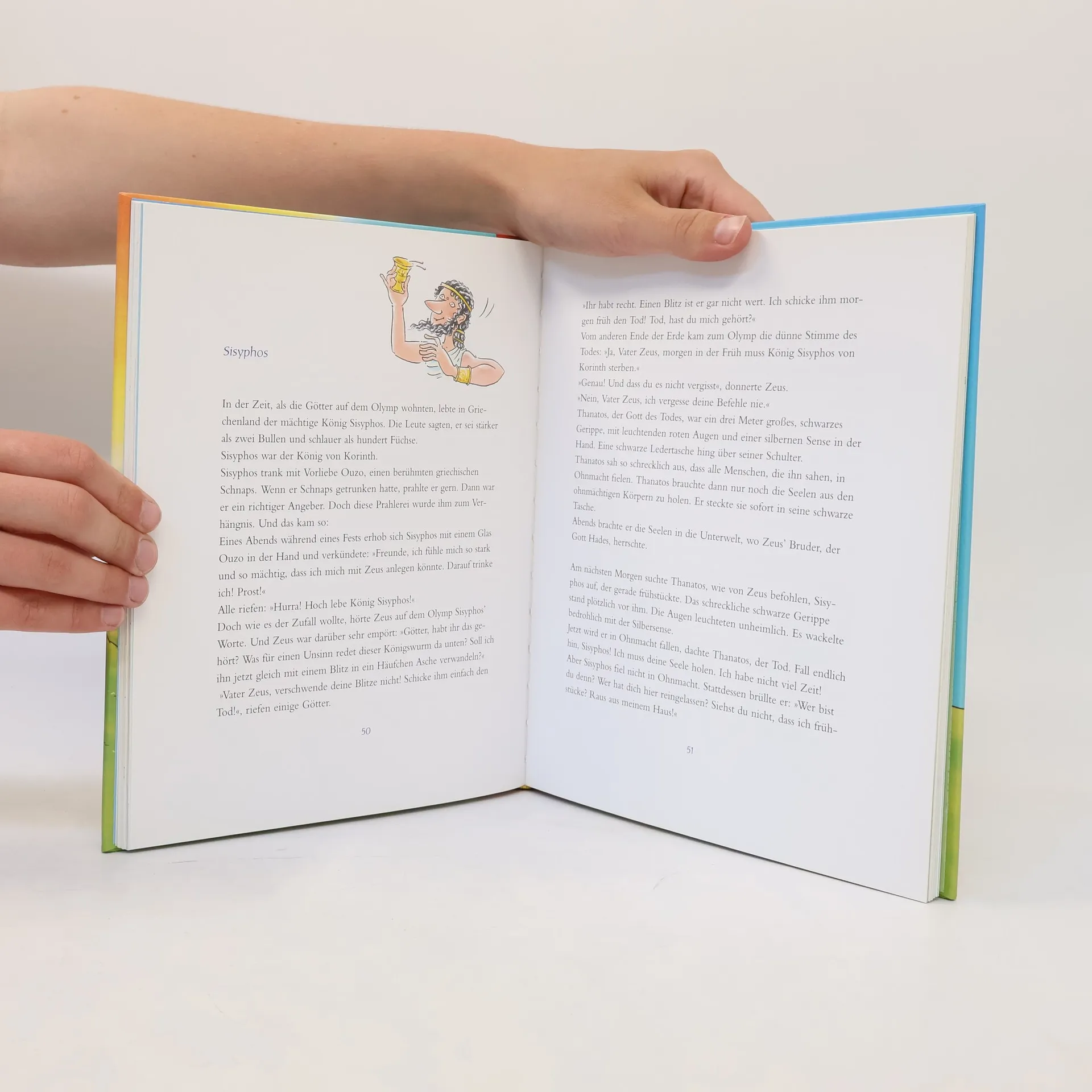 „Die spannendsten griechischen Sagen“ von Dimiter Inkiow bietet eine meisterhafte Zusammenstellung von 20 bekannten Geschichten der griechischen Mythologie, humorvoll und verständlich für junge Leser erzählt. Die Leser werden auf eine fesselnde Reise durch die antike Welt mit Göttern und Helden wie Sisyphos, Kadmos und dem legendären König Midas mitgenommen. Die altersgerecht aufbereiteten Geschichten machen die komplexe Mythologie zugänglich und vermitteln spielerisch Wissen. Witzige Illustrationen von Wilfried Gebhardt bereichern das Buch visuell und machen die Erzählungen lebendig. Neben bekannten Erzählungen werden auch weniger bekannte Sagen behandelt, was eine umfassende Einführung in die griechische Sagenwelt bietet. Die Geschichten über Daedalus und Ikaros, die Abenteuer des Theseus und die Geschichte von Achilles verdeutlichen moralische und ethische Lehren der Antike. Dieses Buch ist nicht nur ein Vorlesebuch, sondern ein wertvoller Geschichtenschatz, der Eltern und Kinder begeistert und zum gemeinsamen Entdecken und Lernen einlädt. Es ist ideal für gemeinsames Lesen und Lernen, fördert Neugier und Interesse an Geschichte und Mythologie. Die Vielfalt an Geschichten, von bekannten Helden bis hin zu weniger bekannten Sagen, regt die Fantasie an und vermittelt Wissen. Perfekt als Geschenk für neugierige Kinder ab 5 Jahren, die sich für Geschichte und Mythologie interessieren.
