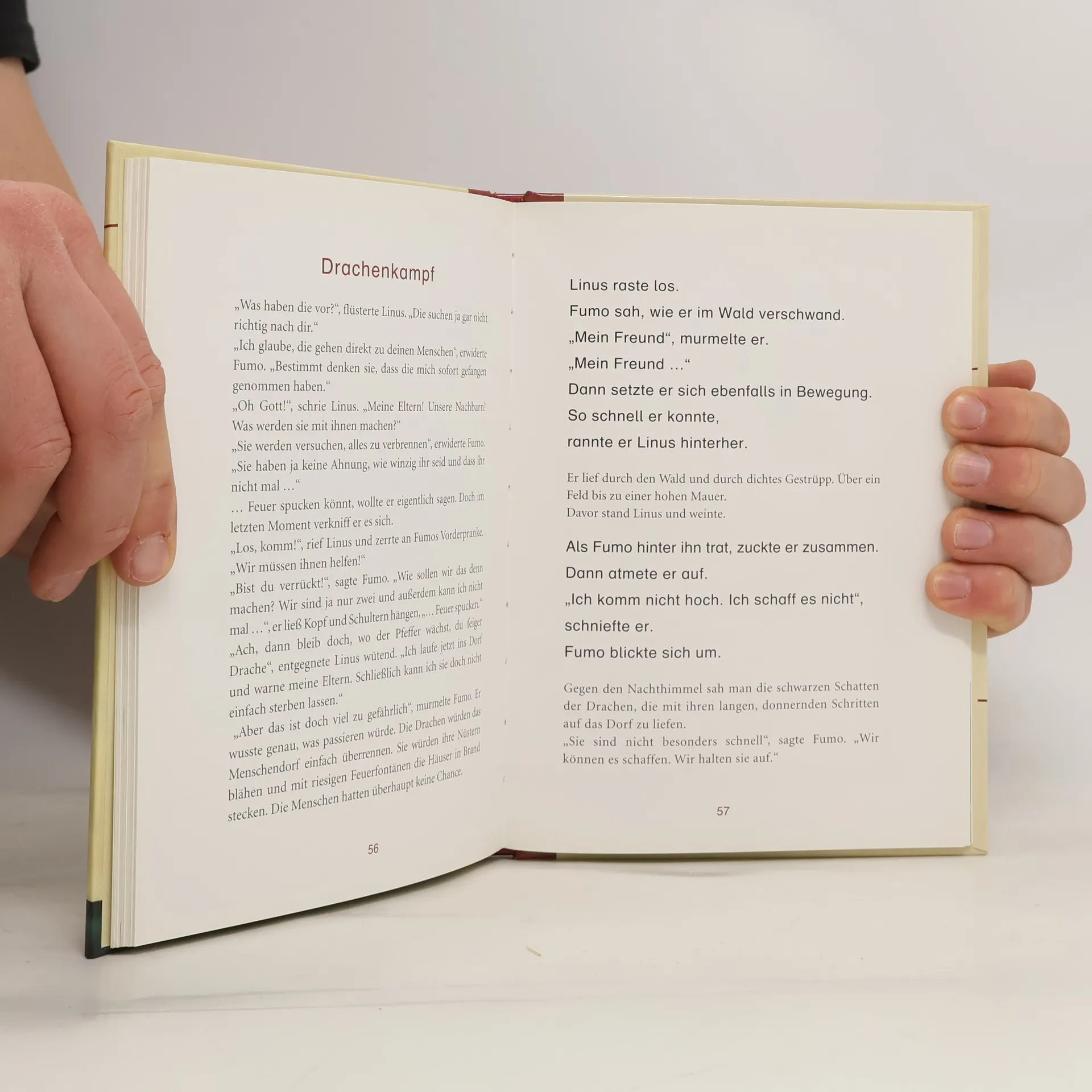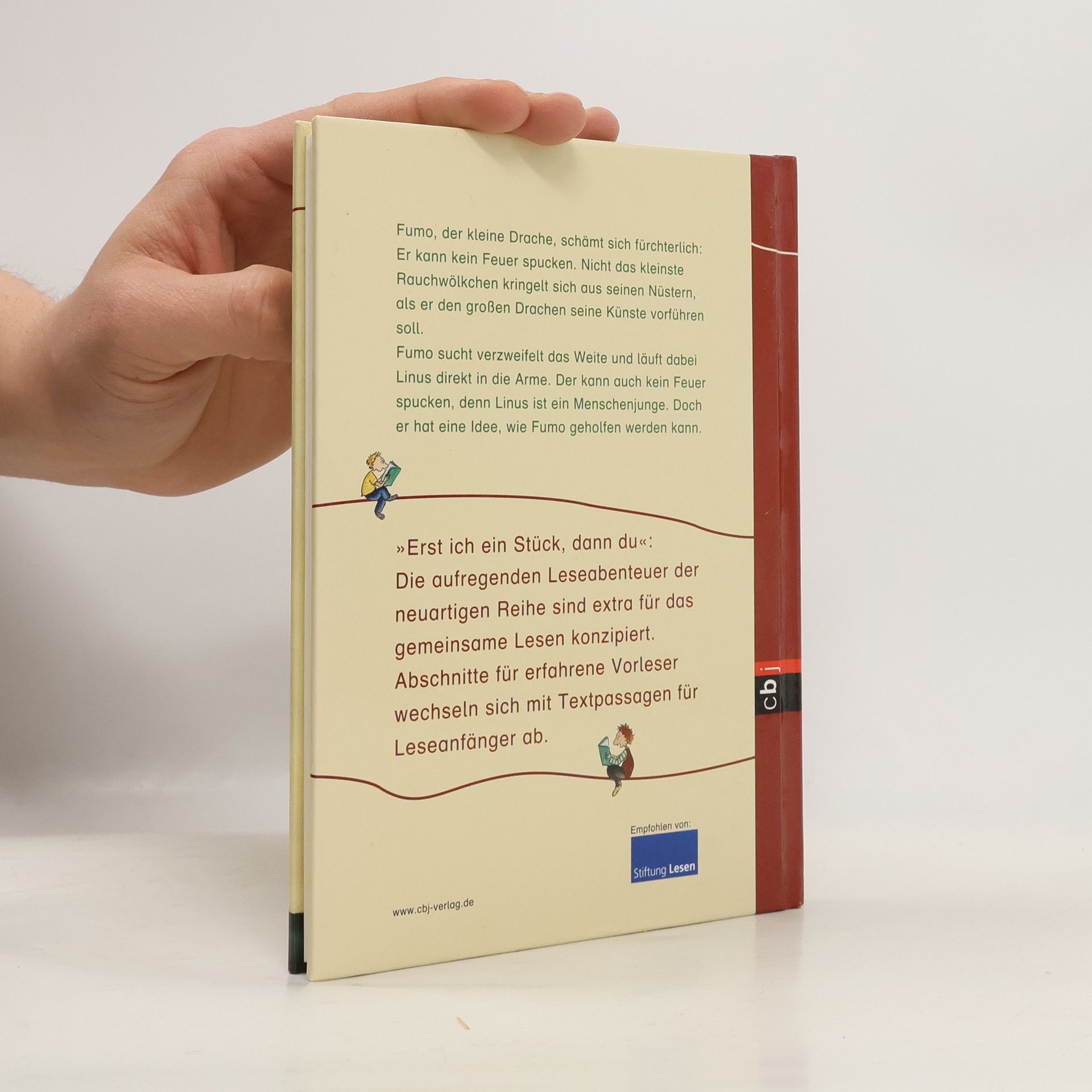 Die erfolgreiche Kinderbuchreihe mit bewährtem Konzept für das gemeinsame Lesenlernen und –üben Fumo, der kleine Drache, schämt sich fürchterlich: Er kann kein Feuer spucken. Nicht das kleinste Rauchwölkchen kringelt sich aus seinen Nüstern, als er den großen Drachen seine Künste vorführen soll. Untröstlich flieht Fumo und läuft direkt Linus in die Arme. Linus kann auch kein Feuer spucken, denn Linus ist ein Menschenjunge. Bald sind die beiden dicke Freunde, und als Fumo das Menschendorf vor einem Unglück bewahrt, ist ihm klar: Man muss kein Feuer spucken können, um ein großer Held zu sein. Wenn das Lesen für Leseanfänger noch mühsam ist, heißt es in vielen Familien: »Lass uns gemeinsam lesen. Erst ich ein Stück, dann du. Wir wechseln uns ab.« Deswegen ist unsere beliebte Erstleser-Reihe »Erst ich ein Stück, dann du« speziell für das gemeinsame Lesen konzipiert: * Leseabschnitte für die erfahrenen Vorleser und die Leseanfänger wechseln sich ab * längere Passagen für Vorleser in kleiner Schrift * kurze Texte für Leseanfänger in Fibelschrift So macht gemeinsames Leselernen Spaß! Ausstattung: Mit fbg. Illustrationen