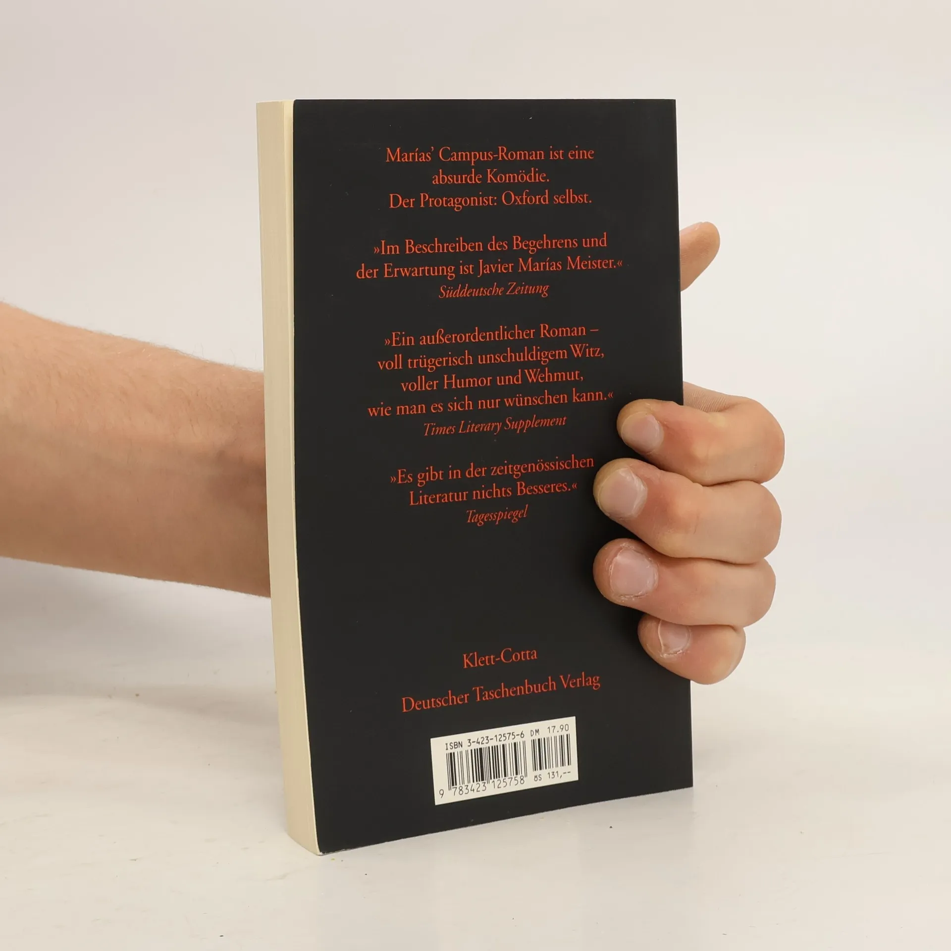Bevor er fuhr, hatte man ihn gewarnt, daß in Oxford das einzig Wichtige die erotischen Phantasien seien. Da kommt also ein junger Spanier als Gastdozent nach Oxford, ins Paradies der Solisten, und macht die Erfahrung, wie einsam man sich in einer geschlossenen Gesellschaft fühlen kann. Um emotional nicht zu verhungern, beginnt er eine Affäre mit der verheirateten Dozentin Clare, in deren Blicken er bei einem grotesken Dinner seine eigene Kindheit wiederfindet. Doch erst in ihrer letzten gemeinsamen Nacht enthüllt sie ihr Geheimnis Javier Marías' Campus-Roman ist eine absurde Komödie; der Protagonist: Oxford selbst. Im Beschreiben des Begehrens und der Erwartung ist Javier Marías Meister. (Verena Auffermann in der „Süddeutschen Zeitung“).