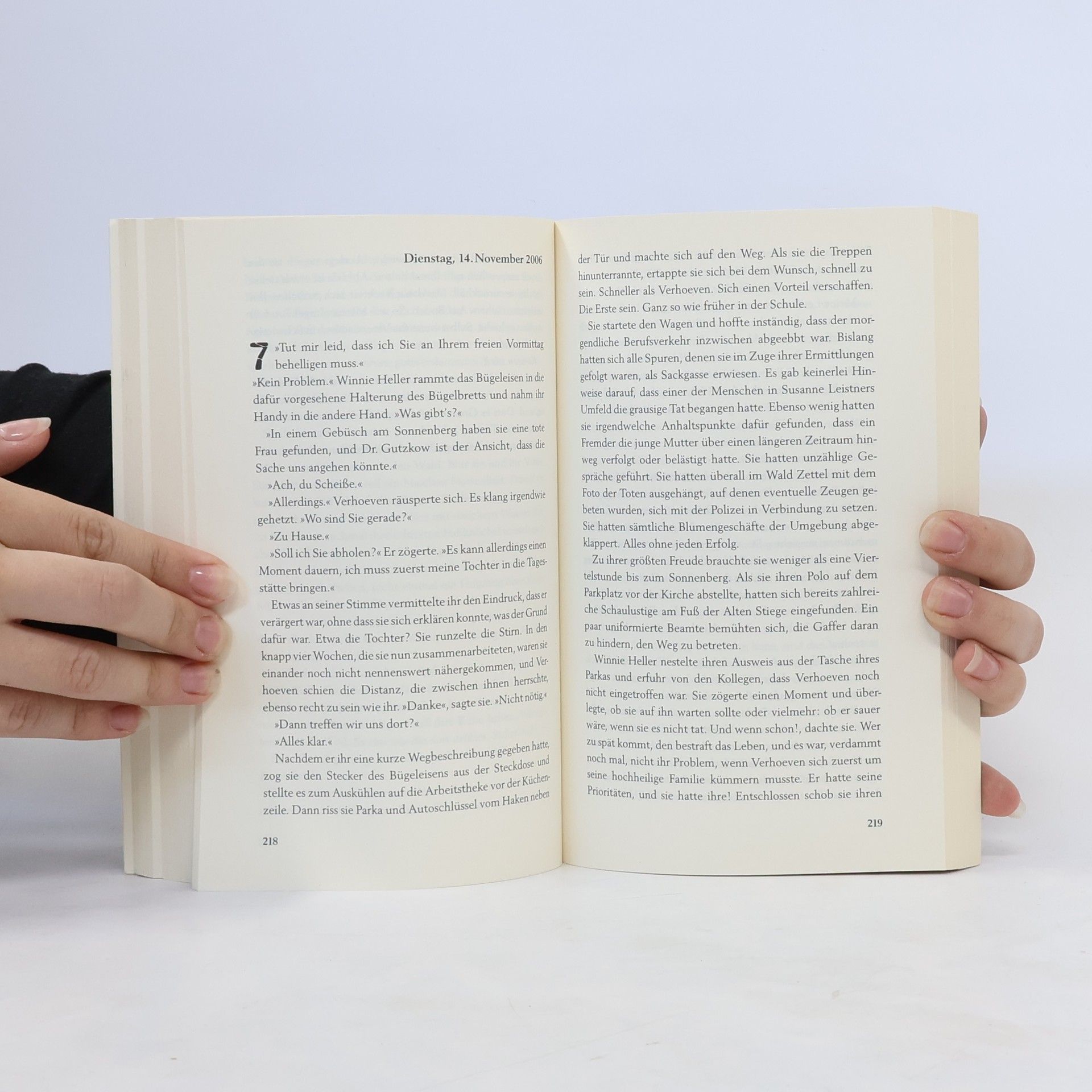 Von Brautgeschenken, die nicht nur ungewöhnlich, sondern auch besonders grausam sind. Im Stadtwald wird eine Frauenleiche gefunden. Die Tote ist schrecklich zugerichtet: in ihrer offenen Bauchhöhle steckt eine Chrysantheme, eine Totenblume. Es ist der erste gemeinsame Fall für Kommissar Hendrik Verhoeven und seine neue Kollegin Winnie Heller (die ziemliche Mühe haben, miteinander warm zu werden). Noch ahnen sie nicht, dass die Leiche Geschenk ist: Das Brautgeschenk für die große Liebe. Morgengabe, der weitere folgen werden ... »Brutal gutes Thriller-Debüt.« Alex Dengler