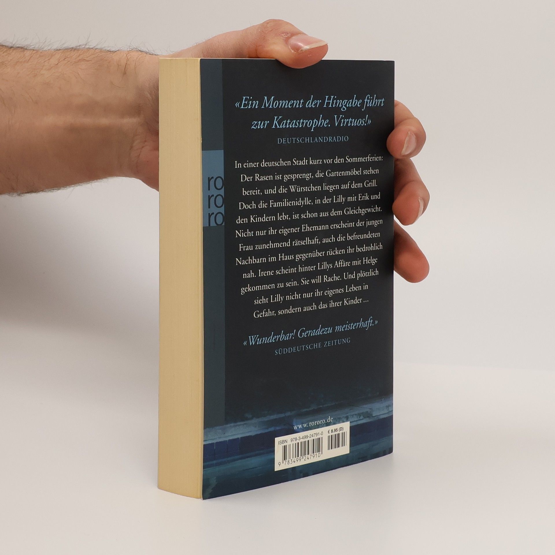 „Ein Moment der Hingabe führt zur Katastrophe. Virtuos!“ (Deutschlandradio)In einer deutschen Stadt kurz vor den Sommerferien: Der Rasen ist gesprengt, die Gartenmöbel stehen bereit und die Würstchen liegen auf dem Grill. Doch die Familienidylle, in der Lilly mit Erik und den Kindern lebt, ist schon aus dem Gleichgewicht. Nicht nur ihr eigener Ehemann erscheint der jungen Frau zunehmend rätselhaft, auch die befreundeten Nachbarn im Haus gegenüber rücken ihr bedrohlich nah. Irene scheint hinter Lillys Affäre mit Helge gekommen zu sein. Sie will Rache. Und plötzlich sieht Lilly nicht nur ihr eigenes Leben in Gefahr, sondern auch das ihrer Kinder …„Wunderbar! Geradezu meisterhaft.“ (Süddeutsche Zeitung)