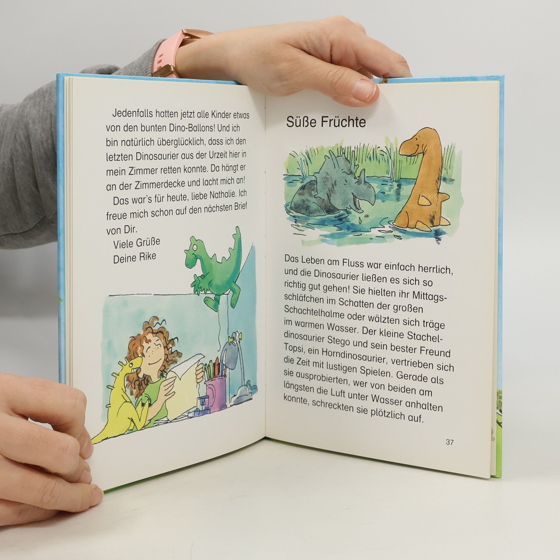 6 Dinosauriergeschichten, die abwechselnd in der Zeit der Saurier oder in der Gegenwart spielen. Für geübte Leseanfänger ab 8.