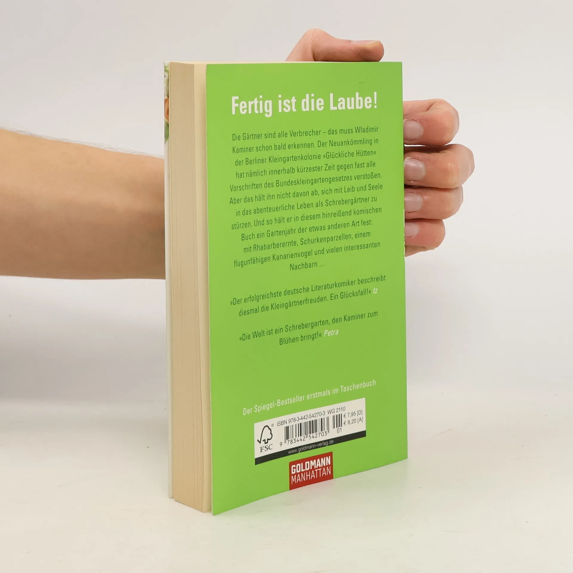 Laube, Liebe, Hoffnung Die Gärtner sind alle Verbrecher – das muss Wladimir Kaminer schon bald erkennen. Der Neuankömmling in der Berliner Kleingartenkolonie „Glückliche Hütten“ hat nämlich innerhalb kürzester Zeit gegen fast alle Vorschriften des Bundeskleingartengesetzes verstoßen. Aber das hält ihn nicht davon ab, sich mit Leib und Seele in das abenteuerliche Leben als Schrebergärtner zu stürzen. Und so hält er in diesem hinreißend komischen Buch ein Gartenjahr der etwas anderen Art fest, mit Rhabarberernte, interessanten Nachbarn und ungezähmter Natur …Fertig ist die Laube!Der Schrebergarten als Ort hinreißend lustiger Abenteuer und Heimat deutscher Eigenarten.