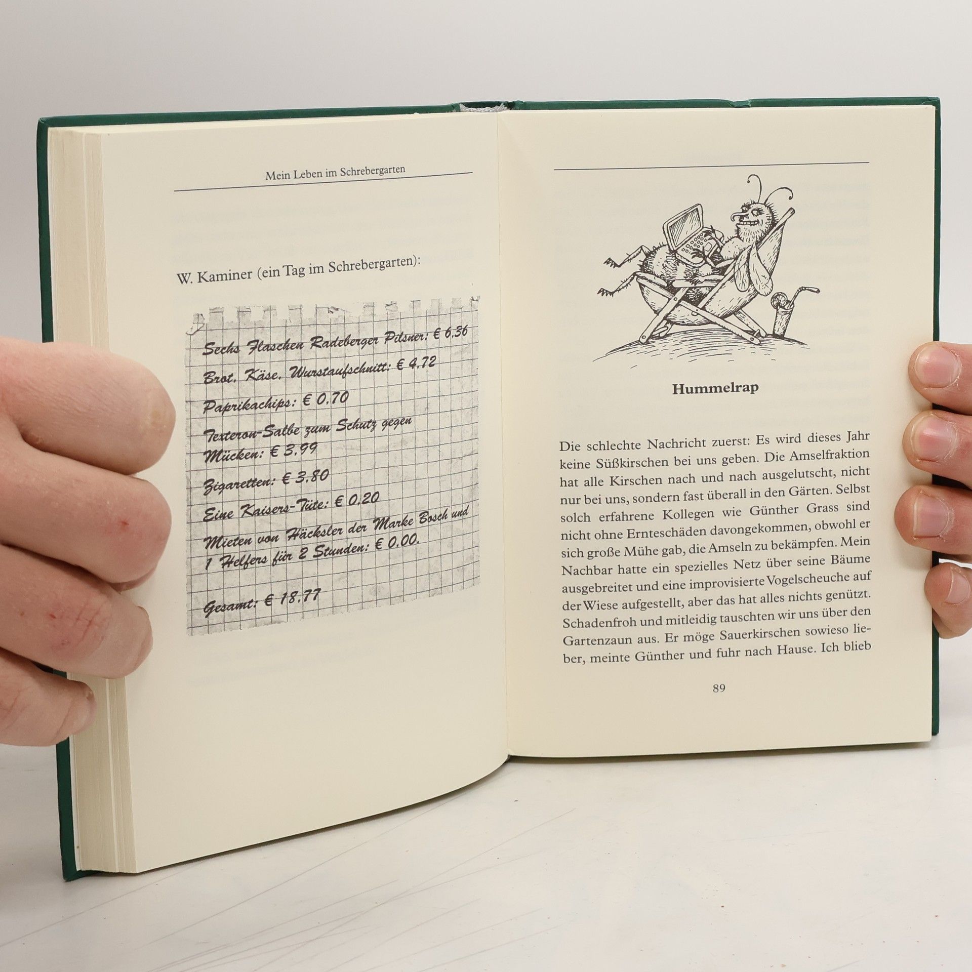 Der Schrebergarten – eine Oase für Dichter und Denker, aber auch eine Herausforderung für jeden echten Mann. Wladimir Kaminer erzählt von seinen Abenteuern als Besitzer der Parzelle 118 in der Berliner Kleingartenkolonie „Glückliche Hütten“. Nach eingehender Lektüre der Gartenordnungen wird ihm klar, dass er und seine Nachbarn in nur zwei Monaten gegen zahlreiche Vorschriften verstoßen haben, darunter Ruhestörung und das Anpflanzen unerlaubter Hecken. Selbst die Idee, eine Kuh anzuschaffen, wird nicht ausgeschlossen. Mit Humor schildert Kaminer die skurrilen Begegnungen mit seinen Nachbarn, wie Günther Grass, der ihn ermutigt, keine Angst vor Bürokraten zu haben, und Frau Beere, die ihm Tipps für den Garten gibt. Die Gärtner scheinen alle kleine Verbrecher zu sein, wenn man die Gesetze genau nimmt, was Kaminer ein wenig beruhigt. Er beschreibt die Herausforderungen des Gärtnerns, von Fruchtfliegen über einen flugunfähigen Kanarienvogel bis hin zu einer unerwarteten Apfelernte. Am Ende des aufregenden Jahres zieht er das Fazit: „Die Erde ist ein Schrebergarten und wir sind ihre Gartenfreunde, die sich zwischen den nassen Rhabarberblättern einquartiert haben.“