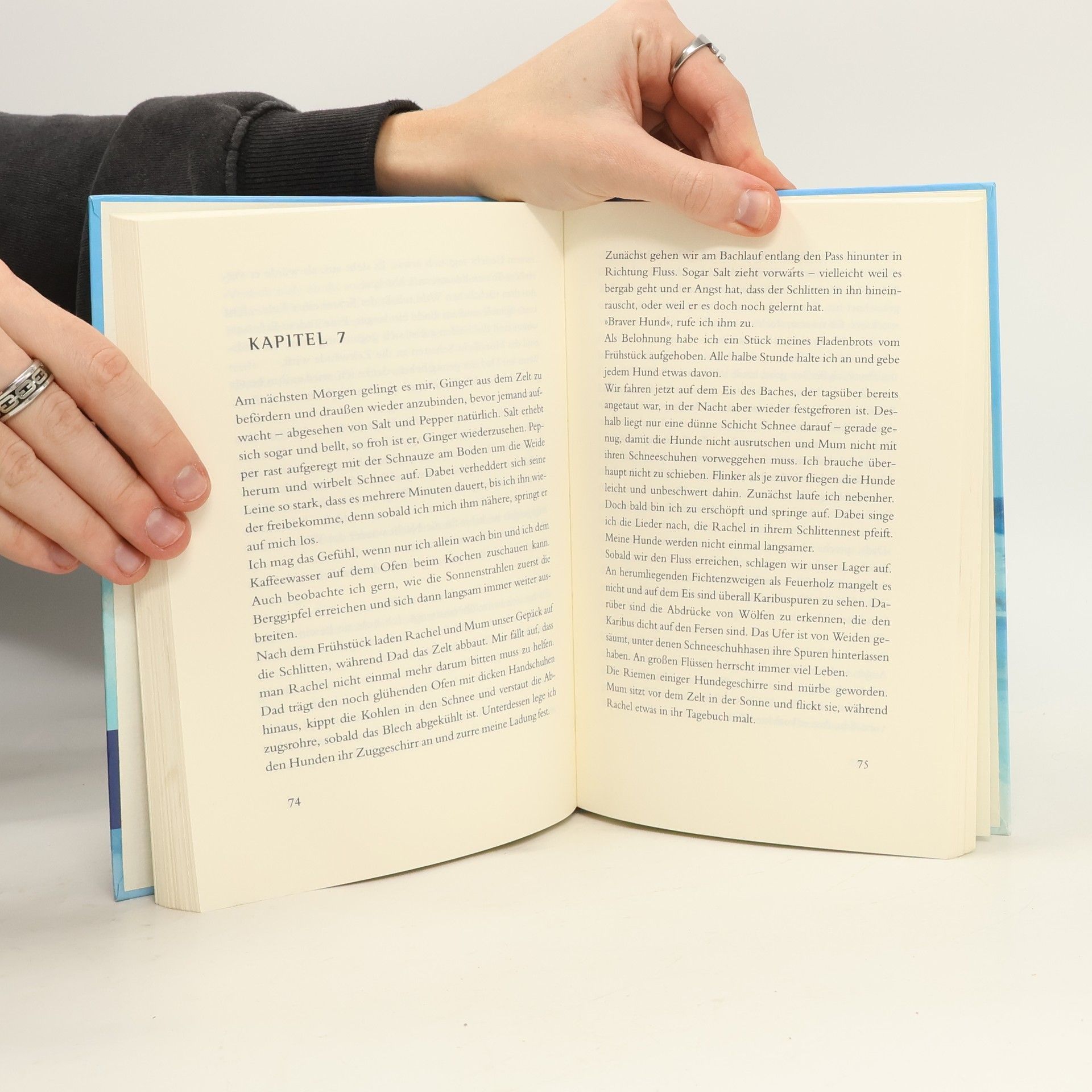Mit dem Hundeschlitten durch die kanadische Wildnis Becky und ihre Familie sind mit Hundeschlitten auf dem Weg zu ihrem Blockhaus in den Bergen. Früher lebten sie das halbe Jahr dort, deshalb ist Becky den Umgang mit Schlittenhunden gewöhnt. Sie träumt davon, eines Tages am Yukon Quest, dem berühmten Hundeschlittenrennen, teilzunehmen. Nun hat sie endlich ihr eigenes Gespann und ist überglücklich, obwohl die lebhaften Hunde es ihr nicht immer leicht machen. Ginger, die Leithündin, ist auch noch trächtig. Als die Schneeschmelze einsetzt, wird das Überqueren der Flüsse gefährlich. Ob die Familie ihr Blockhaus rechtzeitig erreicht? Ein faszinierendes Outdoor-Abenteuer über das Leben mit Tieren in der Natur und zugleich eine warmherzige Familiengeschichte.