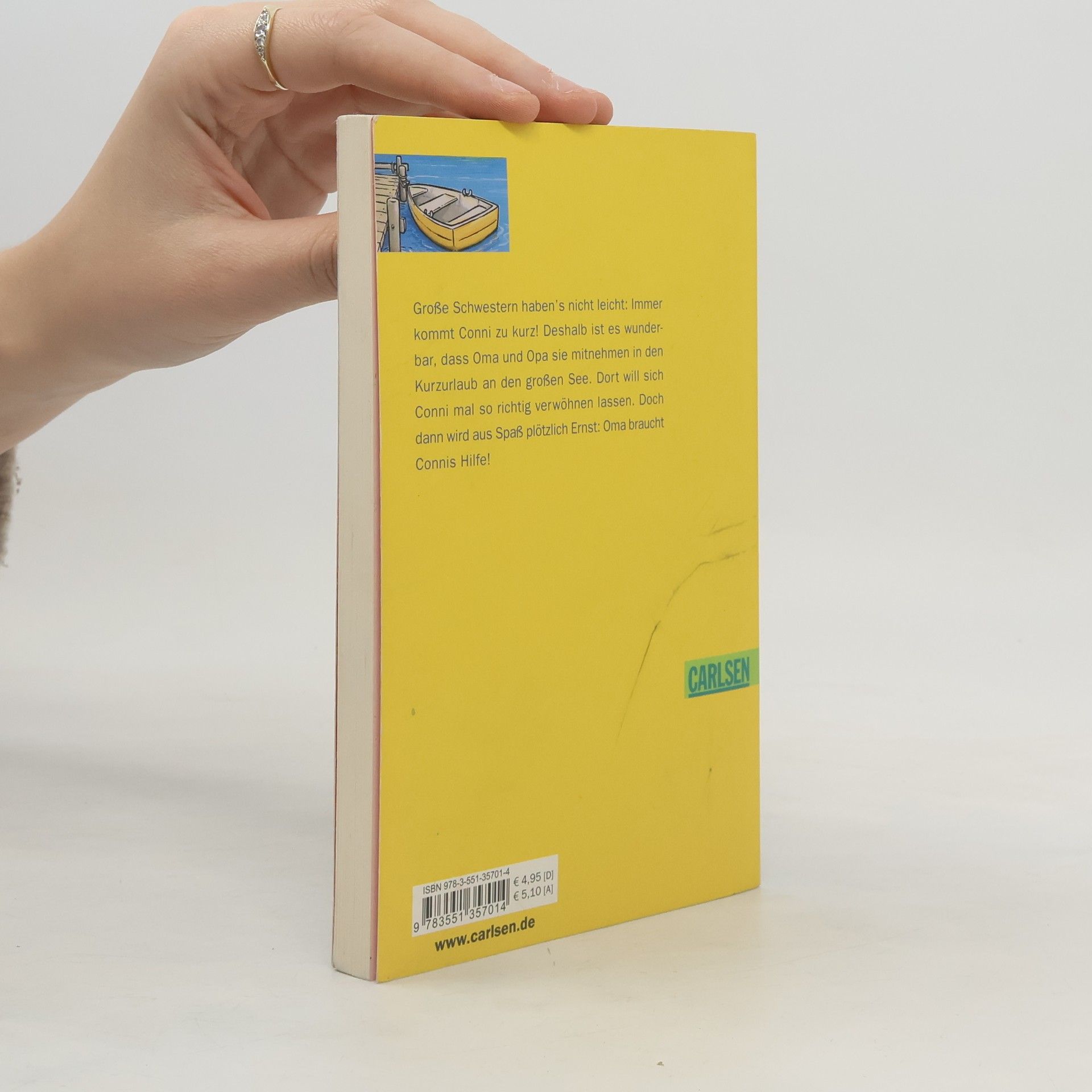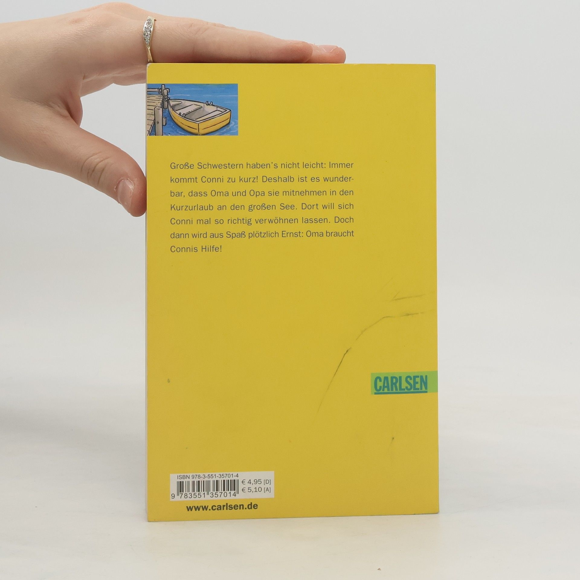 Conni fährt mit Oma und Opa für ein paar Tage an den großen See. Dort will sie sich mal so richtig verwöhnen lassen! Doch dann kommt alles anders: Oma bricht bei einem Spaziergang im Wald zusammen und Conni ist ganz auf sich gestellt. Sie muss den Notarzt rufen und sich um Oma kümmern.