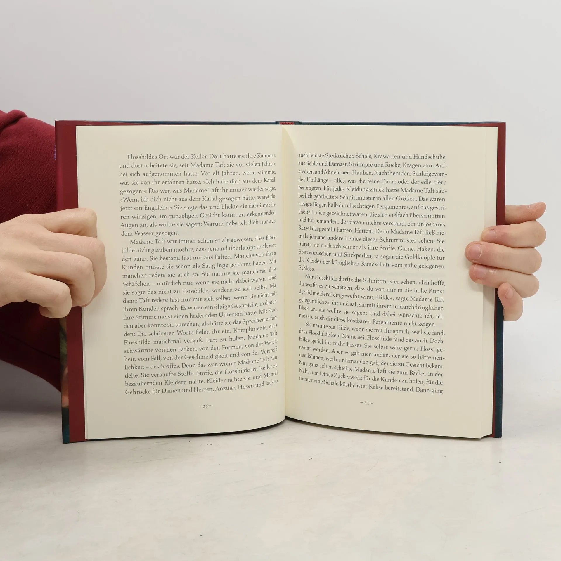 Die elfjährige Flosshilde lebt verborgen, ja beinahe versteckt vor der Welt in ihrer Kellerstube, wo sie für die rätselhafte Madame Taft, die berühmteste Schneiderin weit und breit, die schönsten Kleider näht. Etwas Magisches umgibt diese Kleider, das sich auch Flosshilde nicht erklären kann. Bis eines Tages Madame Taft stürzt und die Treppen zu ihrem Stofflager nicht mehr hinaufsteigen kann. Da entdeckt Flosshilde endlich das Geheimnis der wundersamen Kleider, die in der kleinen Schneiderei Faden & Zwirn entstehen: den Zauber der Wünsche. Doch es gibt noch ein viel größeres Geheimnis, dem Flosshilde nachgehen muss ...