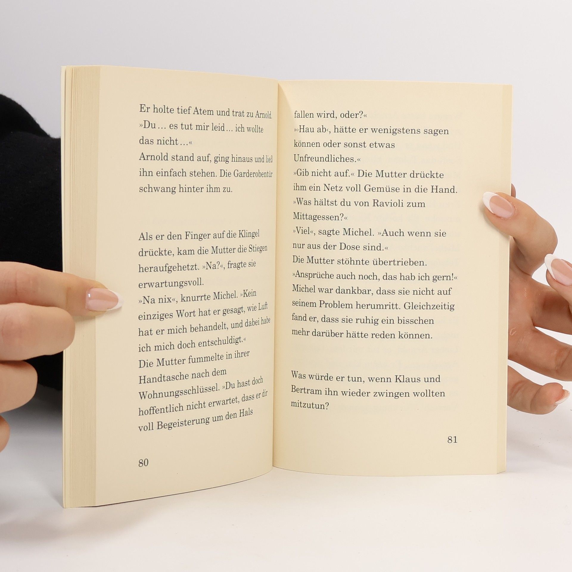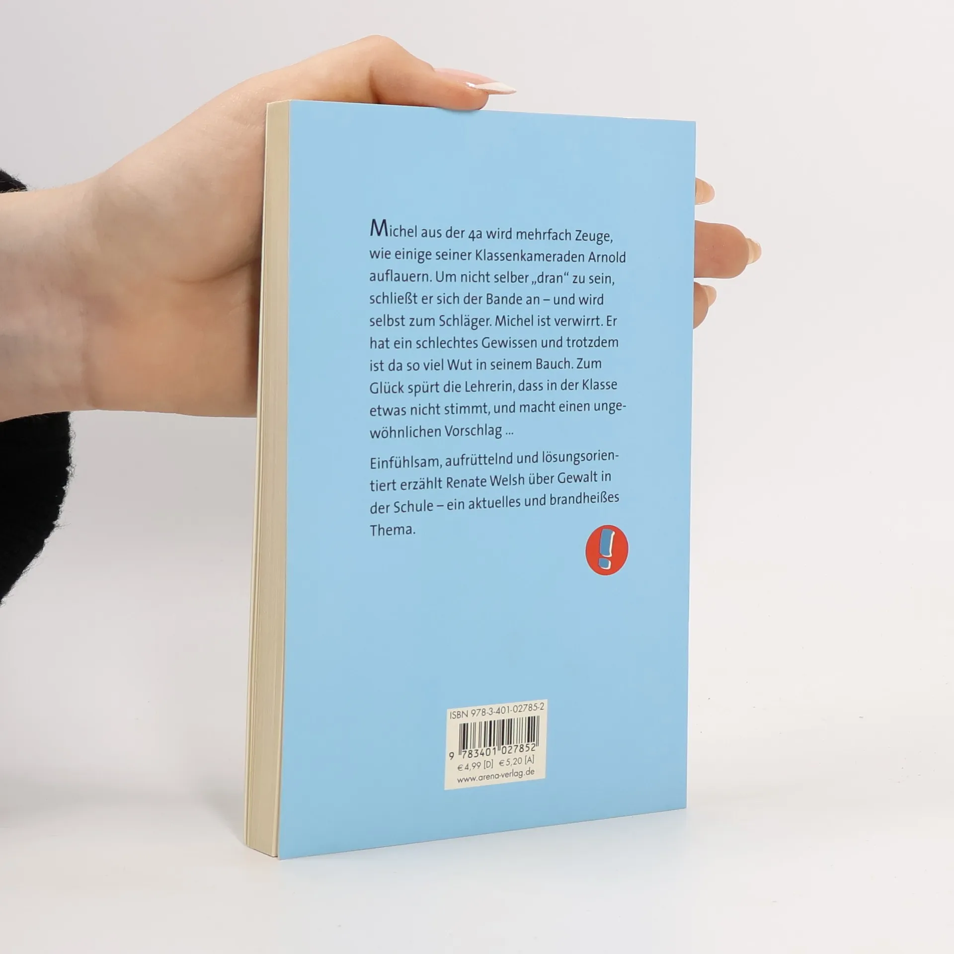 Michel wird mehrfach Zeuge, wie einige seiner Klassenkameraden Arnold auflauern. Um nicht selber „dran“ zu sein, schließt er sich der Bande an – und wird selbst zum Schläger. Michel ist verwirrt. Er hat ein schlechtes Gewissen und trotzdem ist da so viel Wut in seinem Bauch. Zum Glück spürt die Lehrerin, dass in der Klasse etwas nicht stimmt, und macht einen ungewöhnlichen Vorschlag.