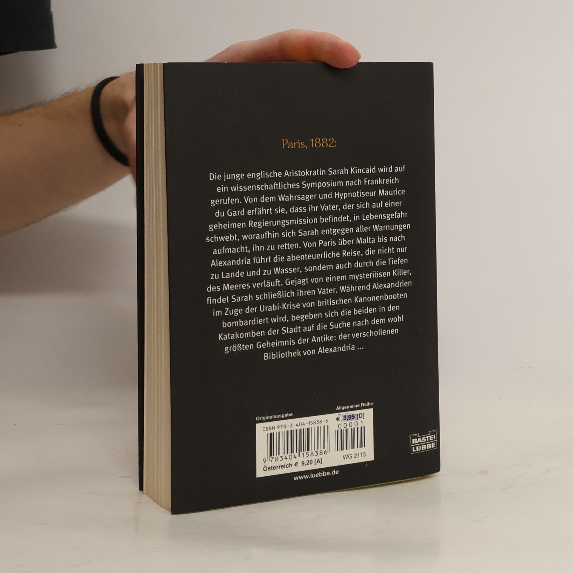 Paris, 1882: Die junge englische Aristokratin Sarah Kincaid wird auf ein wissenschaftliches Symposium nach Frankreich gerufen. Von dem Wahrsager und Hypnotiseur Maurice du Gard erfährt sie, dass ihr Vater, der sich auf einer geheimen Regierungsmission befindet, in Lebensgefahr schwebt, woraufhin sich Sarah entgegen aller Warnungen aufmacht, ihn zu retten. Von Paris über Malta bis nach Alexandria führt die abenteuerliche Reise, die nicht nur zu Lande und zu Wasser, sondern auch durch die Tiefen des Meeres verläuft. Gejagt von einem mysteriösen Killer, findet Sarah schließlich ihren Vater. Während Alexandrien im Zuge der Urabi-Krise von britischen Kanonenbooten bombardiert wird, begeben sich die beiden in den Katakomben der Stadt auf die Suche nach dem wohl größten Geheimnis der Antike: der verschollenen Bibliothek von Alexandria ...