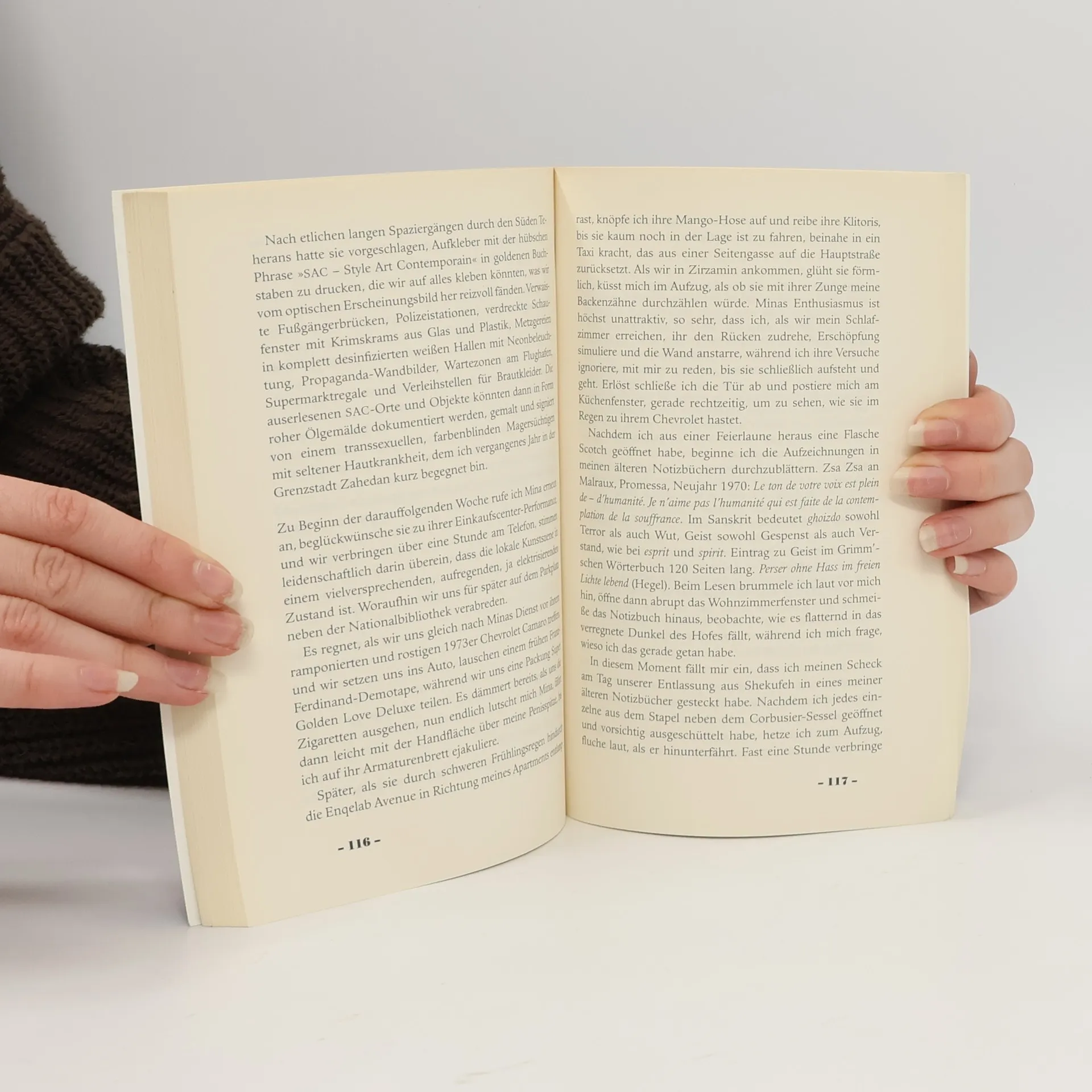 Schnell, clever, komisch – Teheran revisitedTeheran, ein Vierteljahrhundert nach der Revolution: Ein junger Iraner kommt aus dem Ausland zurück, um das Promessa – in den 70er-Jahren eine glamouröse Cocktailbar – als Galerie wiederzueröffnen. Aber er hat keine Ahnung, worauf er sich einlässt. Er taucht ein in die Welt der Teheraner Kulturindustrie, in der sich Politik, Drogen und Markenartikel problemlos miteinander verbinden lassen. Auf der Suche nach Geld, Talent und Bildern für das Promessa eilt unser Protagonist durch Teheran und wird dabei verhaftet, verhört, erpresst und von seinen eigenen Gefährten betrogen. Zum Nachdenken bleibt jedoch keine Zeit, denn die Eröffnung rückt immer näher. Zolghadr schreibt mit Witz und Hintergründigkeit über den Kunstbetrieb, über Pop und Verschwörungstheorien, über Teheran, Hamburg und Beirut. Sein rasanter Roman über die Eröffnung einer Galerie ist zugleich das schillernde Porträt einer Stadt, die so kein Europäer kennt.