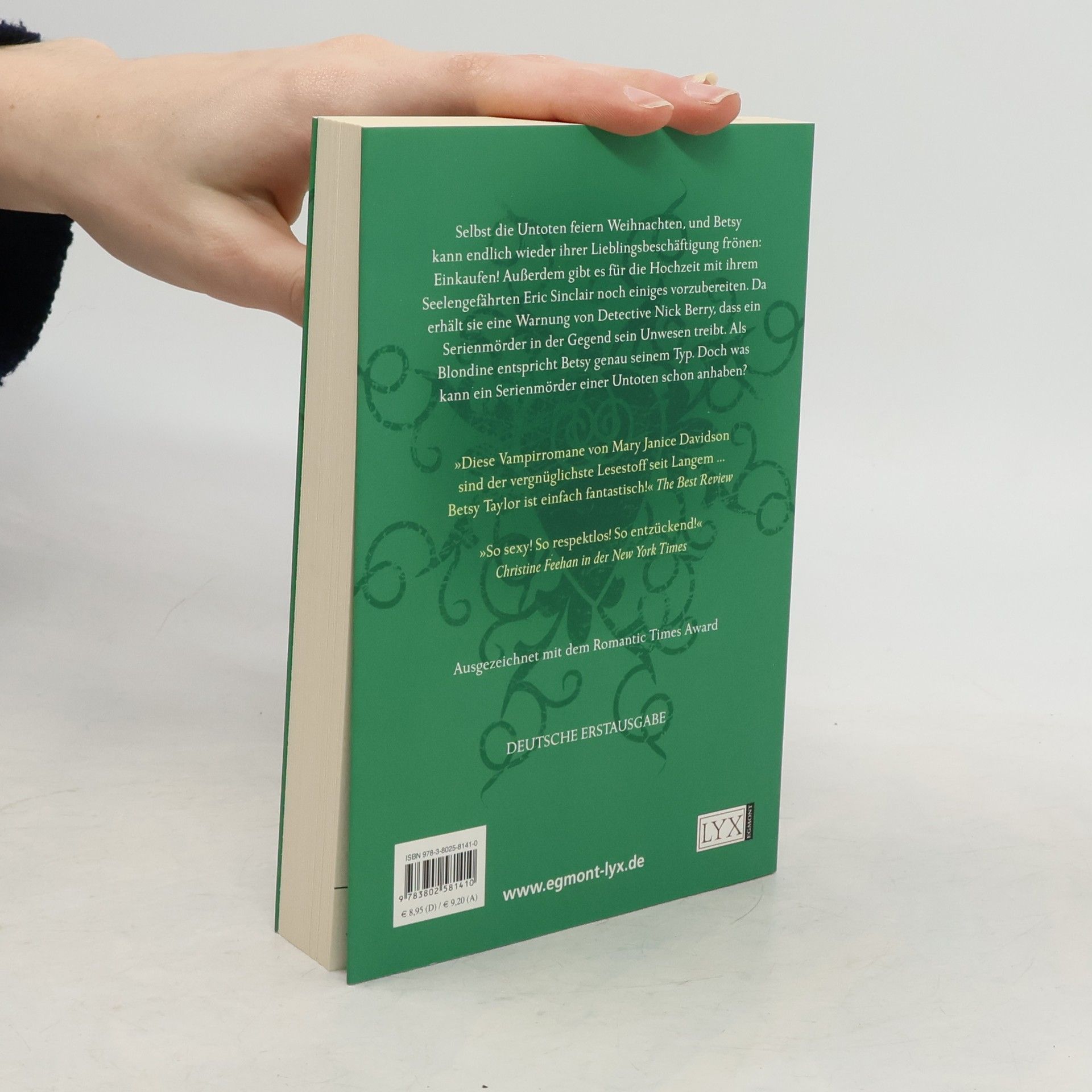 Selbst die Untoten feiern Weihnachten, und Betsy kann endlich wieder ihrer Lieblingsbeschäftigung frönen: Einkaufen! Da erhält sie eine Warnung von Detektiv Nick Berry, dass ein Serienmörder in der Gegend sein Unwesen treibt. Betsy entspricht genau seinem Typ. Doch was kann ein Serienmörder einer Untoten schon anhaben? Vierter Roman der begeistert aufgenommenen Serie um die Vampirin Betsy. Sexy, witzig und wunderbar turbulent! Mit einem kräftigen Schuss Fantasy! Ausgezeichnet mit dem Romantic Times Award!