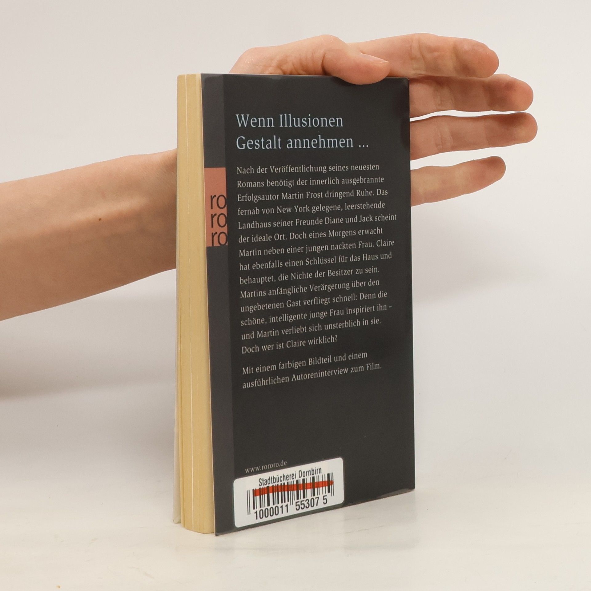 Wenn Illusionen Gestalt annehmen … Nach der Veröffentlichung seines neuesten Romans benötigt der innerlich ausgebrannte Erfolgsautor Martin Frost dringend Ruhe. Das fernab von New York gelegene, leer stehende Landhaus seiner Freunde Diane und Jack scheint der ideale Ort. Doch eines Morgens erwacht Martin neben einer jungen nackten Frau. Claire hat ebenfalls einen Schlüssel für das Haus und behauptet, die Nichte der Besitzer zu sein. Martins anfängliche Verärgerung über den ungebetenen Gast verfliegt schnell: Denn die schöne, intelligente junge Frau inspiriert ihn – und Martin verliebt sich unsterblich in sie. Doch wer ist Claire wirklich? Mit einem farbigen Bildteil und einem ausführlichen Autoreninterview zum Film
