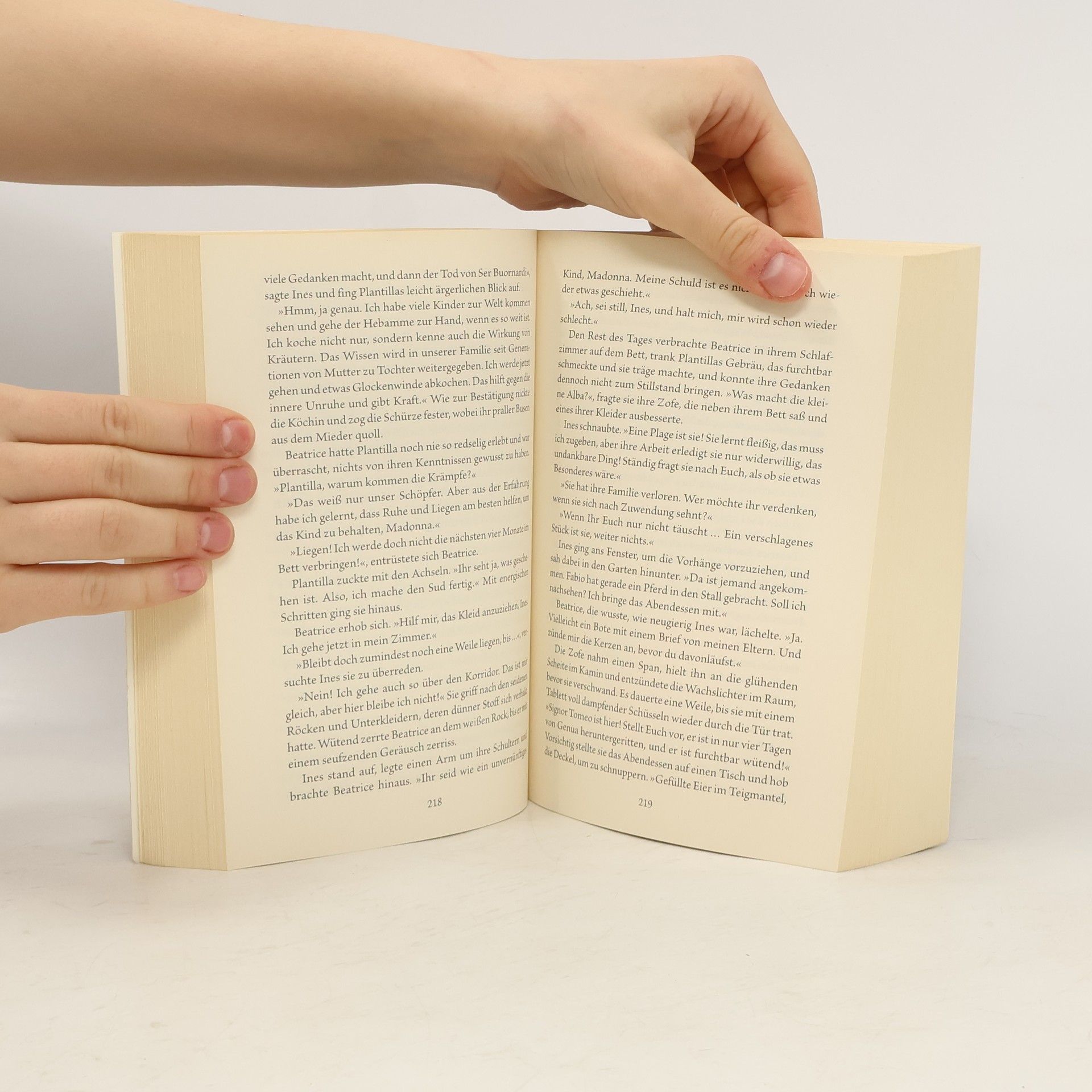 Die Ehe von Beatrice Rimortelli, der Tochter eines lucchesischen Tuchhändlers, mit Federico Buornardi steht unter einem ungünstigen Stern, denn am Vorabend ihrer Hochzeit wird im Dom ein päpstlicher Legat ermordet. Schon kurz nach der Heirat muss Beatrice erkennen, dass ihr Ehemann viele Geheimnisse und eine Geliebte hat. Federicos Palazzo wird für seine Frau eher zum Gefängnis als zum Heim. Nur in Federicos Bruder Tomeo findet Beatrice einen Freund – und bald mehr. Aber Tomeo, Soldat bei den kaiserlichen Truppen, muss zurück in den Krieg …