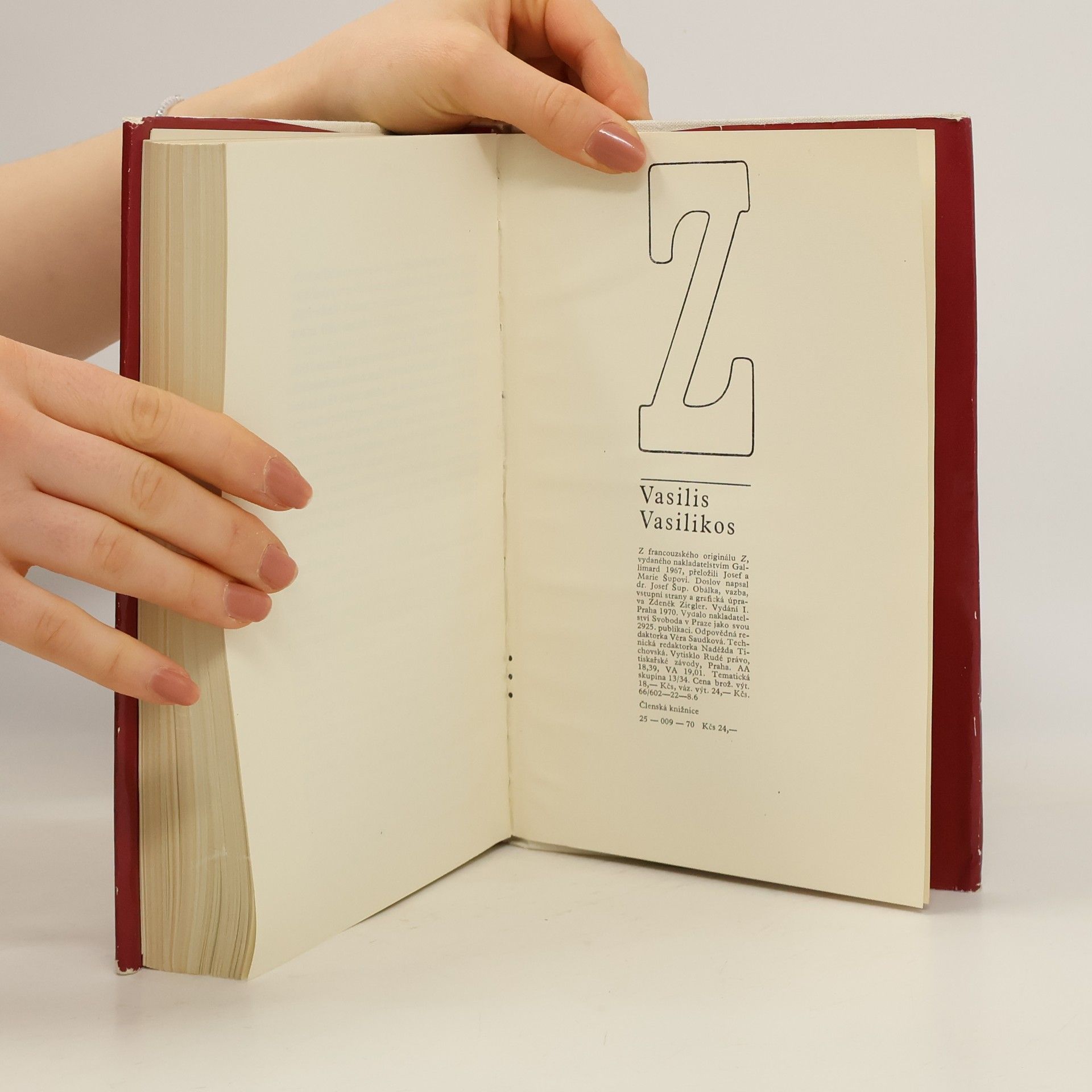 V románu „Z“ popisuje Vasilikos vraždu mladého, progresivního a populárního socialistického poslance Grigorise Lambrakise, který byl výrazným kritikem tehdejší vlády a události, které k ní vedly a které posléze následovaly. Nebyl to ale profesionální politik, byl to lékař a profesor athénské univerzity, bývalým šampionem balkánských sportovních her, člověk lidmi milovaný a obdivovaný. V roce 1963 byl v Soluni ve vládou organizovaném spiknutí zavražděn a to vyvolalo celonárodní vzedmutí protivládního odporu. Vláda se zbavila politického odpůrce ale stvořila lidového hrdinu. Rakev doprovázelo do Athén okolo půl milionů lidí, písmeno „Z“ (ve významu „žije“) se objevovalo všude po celé zemi. Toto hnutí bylo ukončeno až pádem vlády a převzetím moci tzv. vládou plukovníků, která byla u moci sedm let. Vasilikos vytěžil ze znalosti prostředí Soluně a studia dostupných dokumentů a soudních protokolů maximum a vytvořil strhující literární dílo hodné velkého básníka a nesoucí výrazné rysy antické tragedie. Kniha nevyšla v Řecku (sazba byla rozmetána a kniha zakázána), ale rozlétla se jako bájný Fénix po světě v překladu do všech světových jazyků. - České vydání přeloženo z francouzštiny.