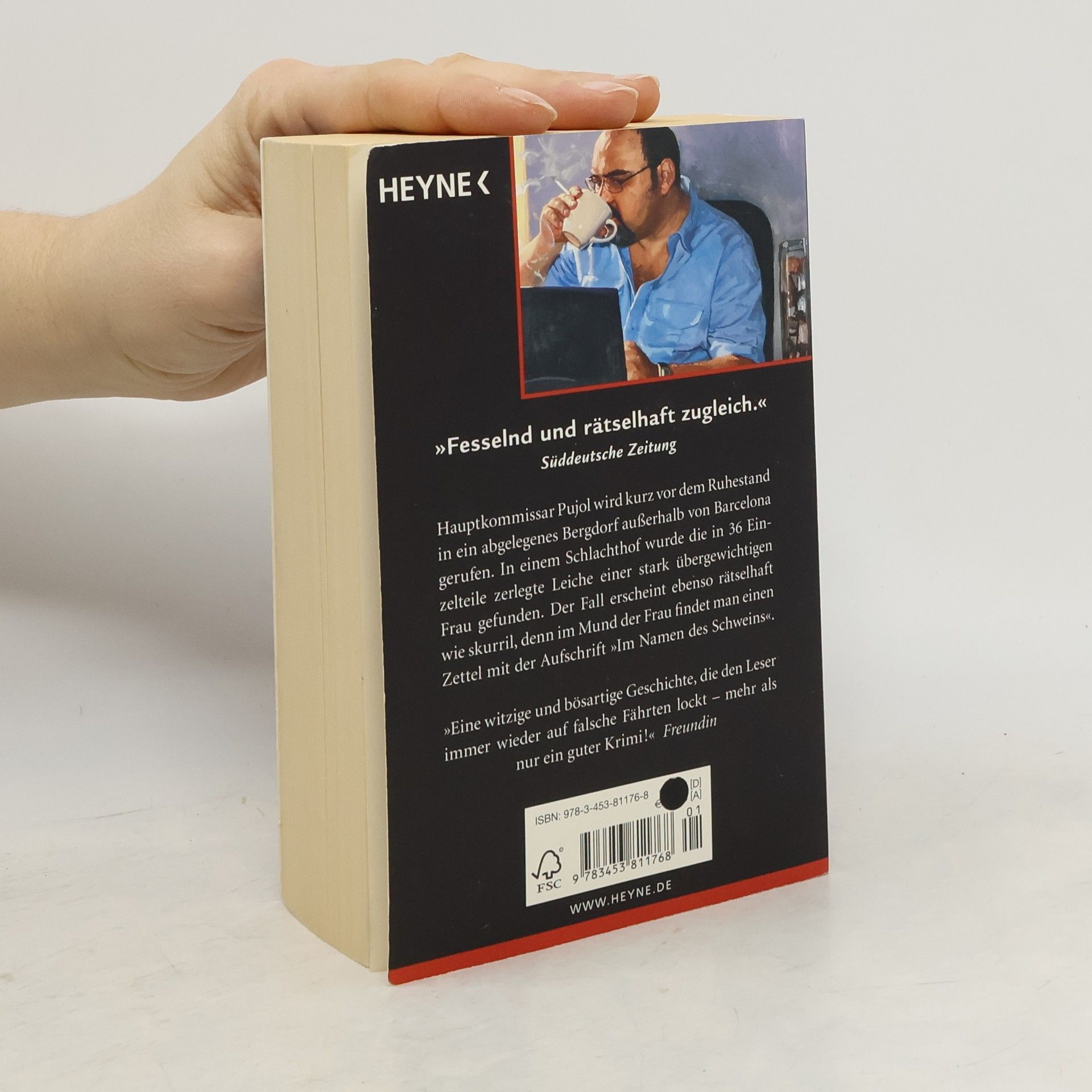 Hauptkommissar Pujol wird kurz vor dem Ruhestand in ein abgelegenes Bergdorf außerhalb von Barcelona gerufen. In einem Schlachthof wurde die in 36 Einzelteile zerlegte Leiche einer stark übergewichtigen Frau gefunden. Der Fall erscheint ebenso rätselhaft wie skurril, denn im Mund der Frau findet man einen Zettel mit der Aufschrift 'Im Namen des Schweins'.