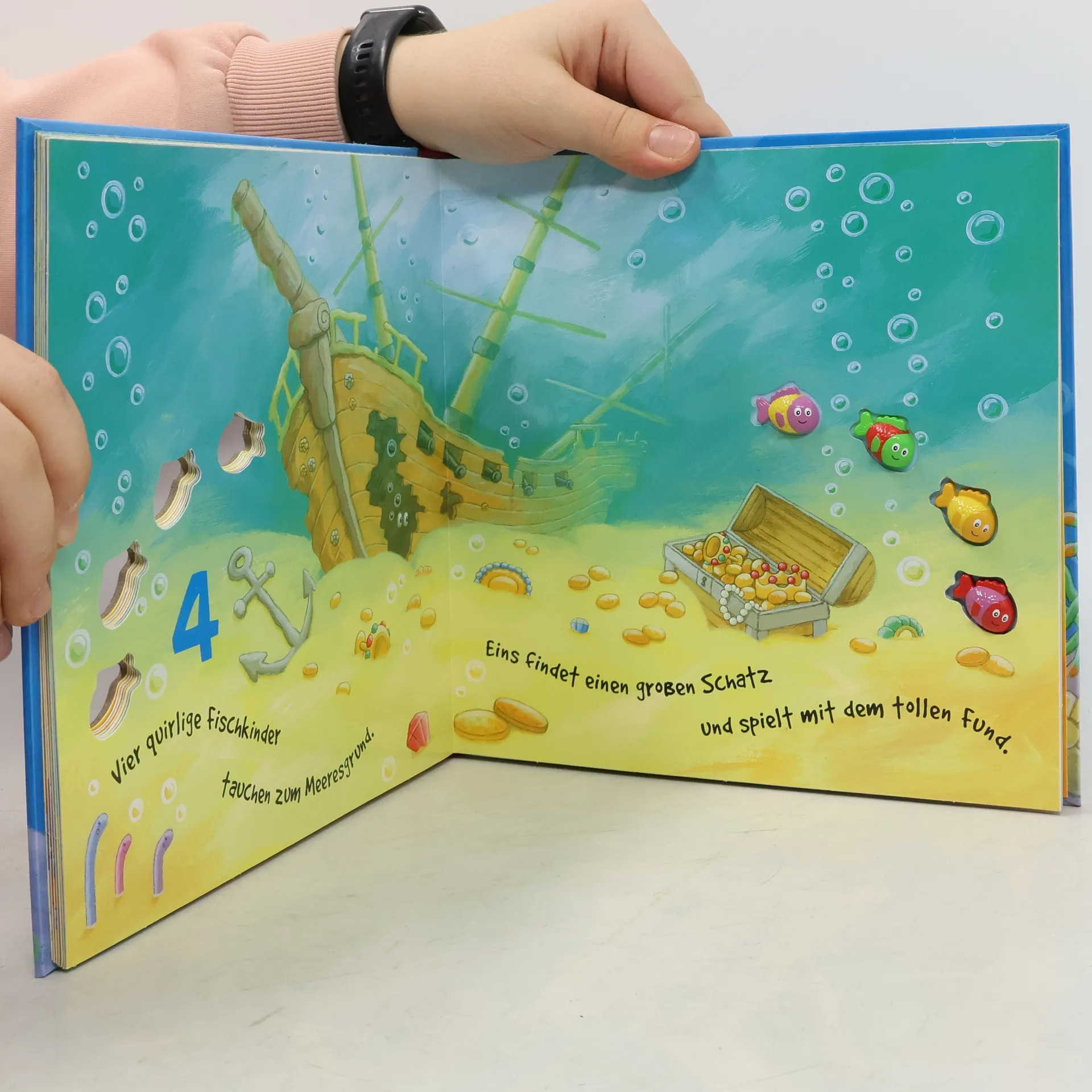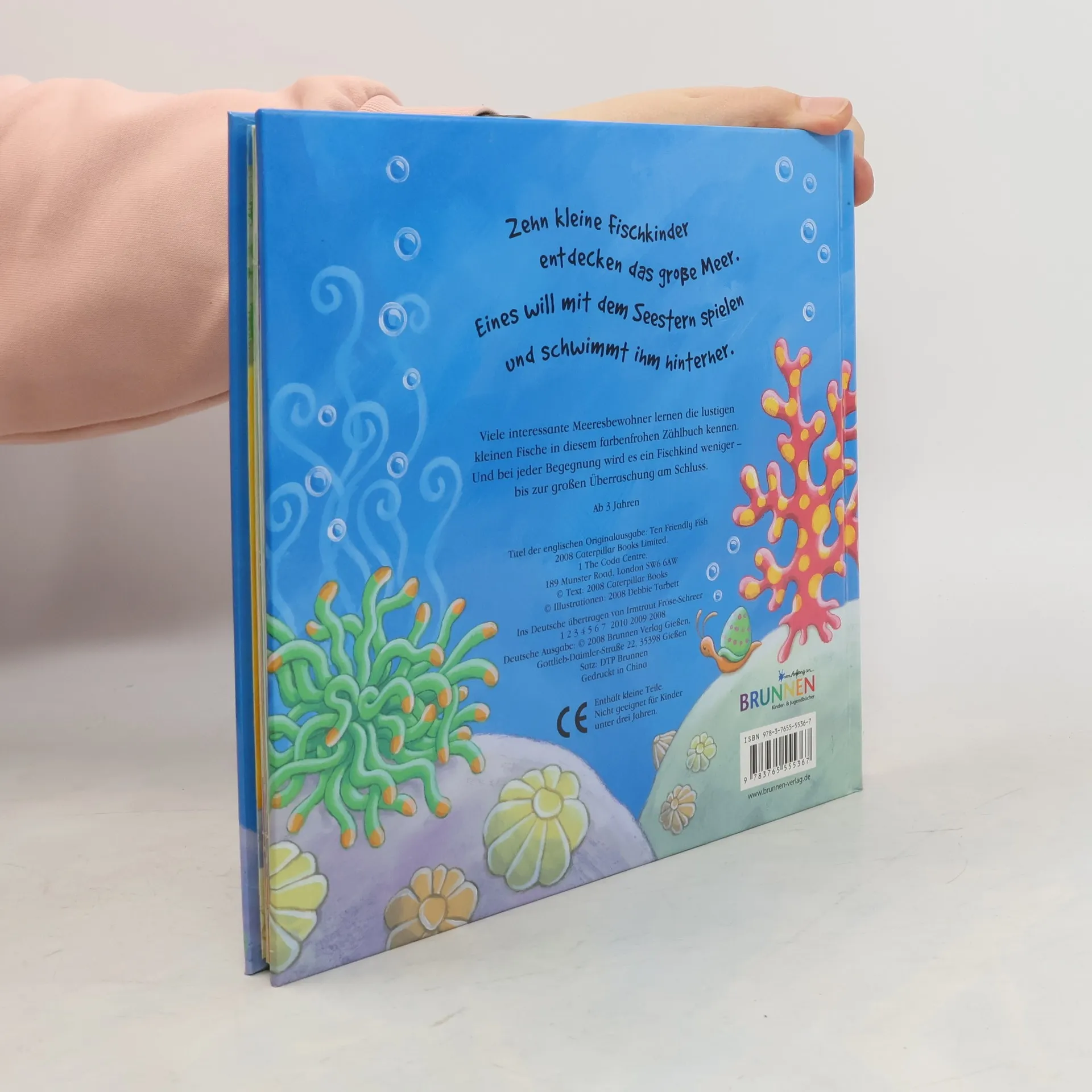 Zehn kleine Fischkinder entdecken das große Meer. Eins will mit dem Seestern spielen und schwimmt ihm hinterher. Viele interessante Meeresbewohner lernen die lustigen kleinen Fische in diesem farbenfrohen Zählbuch kennen. Und bei jeder Begegnung wird es ein Fischkind weniger - bis zur großen Überraschung am Schluss.