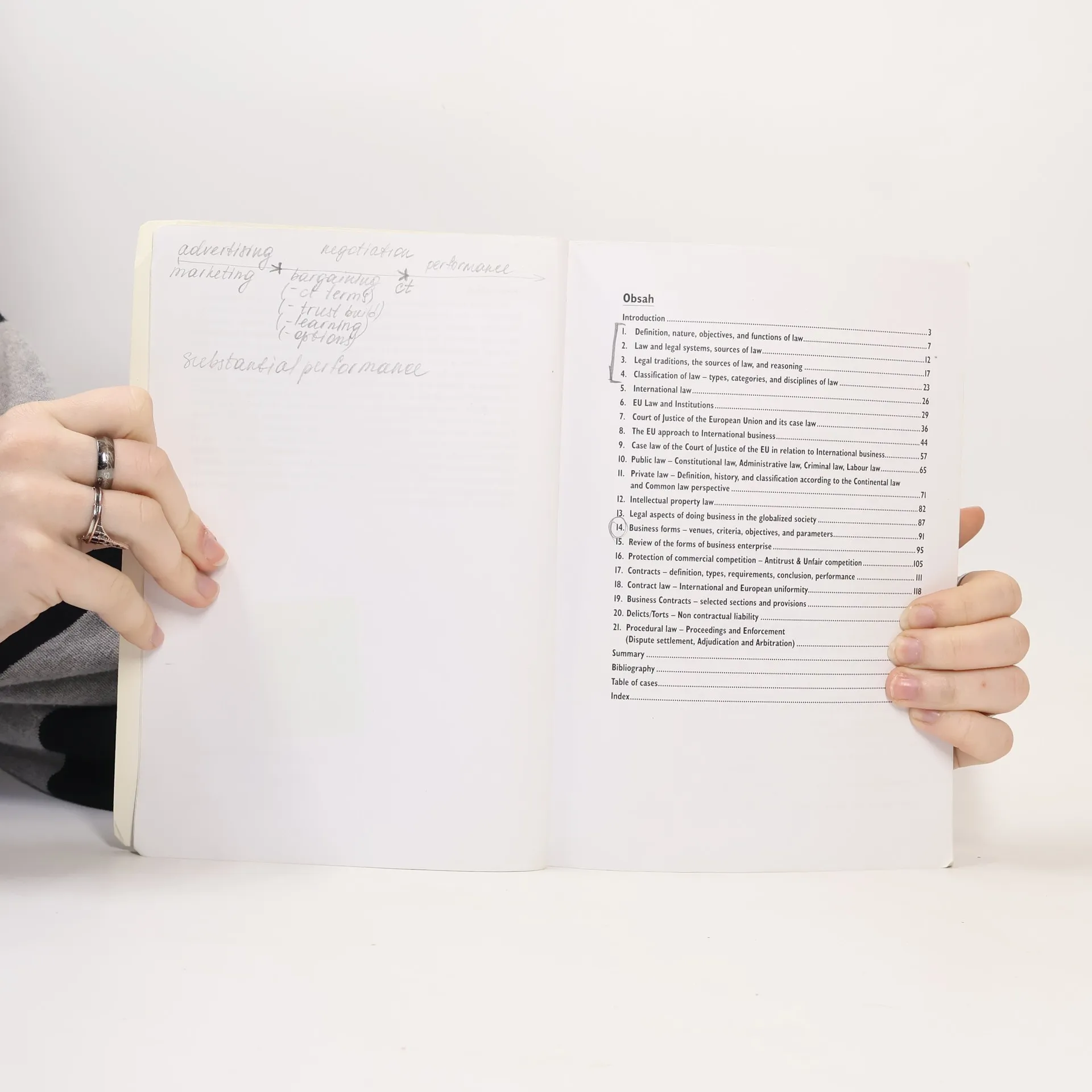 Publikace "Introduction to law for business" je stručným, jasným a praktickým úvodem do práva s důrazem na obchodní a podnikatelské aspekty v rámci západních civilizací, tj. jak ve státech s kontinentálním právem, tak i s common law. Dělba na 21 samostatných kapitol a bodová prezentace umožňují snadnou a rychlou orientaci a získání relevantních informací obratem. Nesporným pozitivem je rozsáhlý tematický záběr, tj. zahrnutí jak vnitrostátního práva, tak i práva mezinárodního a evropského (včetně judikatury), stejně jako práva hmotného i práva procesního. Dále je třeba vyzdvihnout uvedení řady praktických příkladů a doporučení (např. ohledně smluvních ustanovení).