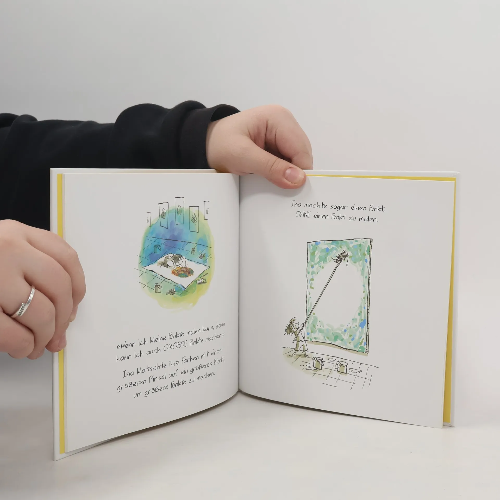 Ina ist sauer. Sie soll im Kunstunterricht etwas malen. Aber sie kann doch nicht malen. Wütend klatscht sie einen Punkt auf ihr weißes Blatt – und soll dies »Kunstwerk« zu ihrer Verblüffung signieren. Am nächsten Tag hat die Lehrerin Inas Punkt gerahmt und aufgehängt. Ina ist erstaunt und bekommt Lust, neue Punkte zu machen. Es entstehen tolle Bilder, die sie sogar ausstellt. Und als ein kleiner Junge kommt und traurig sagt, dass er nicht malen kann, weiß Ina, was zu tun ist. Mit diesem witzigen Bilderbuch ermutigt Peter H. Reynolds alle, an die eigene Kreativität zu glauben und einfach mal loszulegen. Eine originelle erste Begegnung mit Kunst – im wahrsten Sinne des Wortes auf den Punkt gebracht!