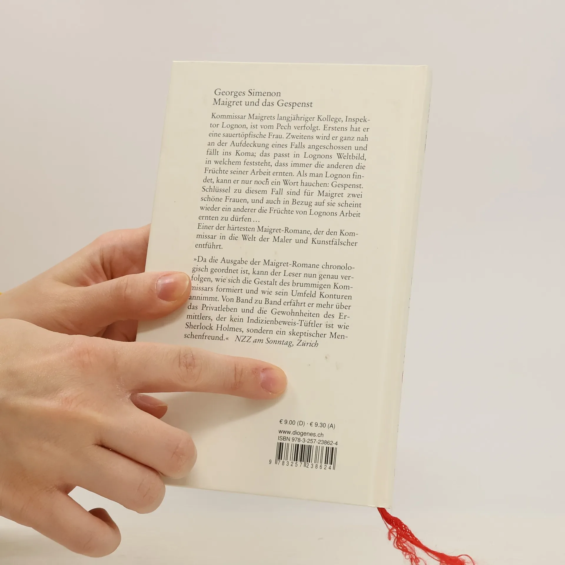Maigrets Rivale, Inspektor Lognon, ist vom Pech verfolgt. Erstens hat er eine sauertöpfische Frau. Zweitens wird er kurz vor der Aufdeckung eines Falls angeschossen und fällt ins Koma; das passt in Lognons Weltbild, in welchem feststeht, dass immer die anderen die Früchte seiner Arbeit ernten. Als man Lognon findet, kann er nur noch ein Wort hauchen: Gespenst. Schlüssel zu diesem Fall sind für Maigret zwei schöne Frauen, und auch in Bezug auf sie scheint wieder ein anderer die Früchte von Lognons Arbeit ernten zu dürfen … Einer der härtesten Maigret-Romane, der den Kommissar in die Welt der Maler und Kunstfälscher entführt."