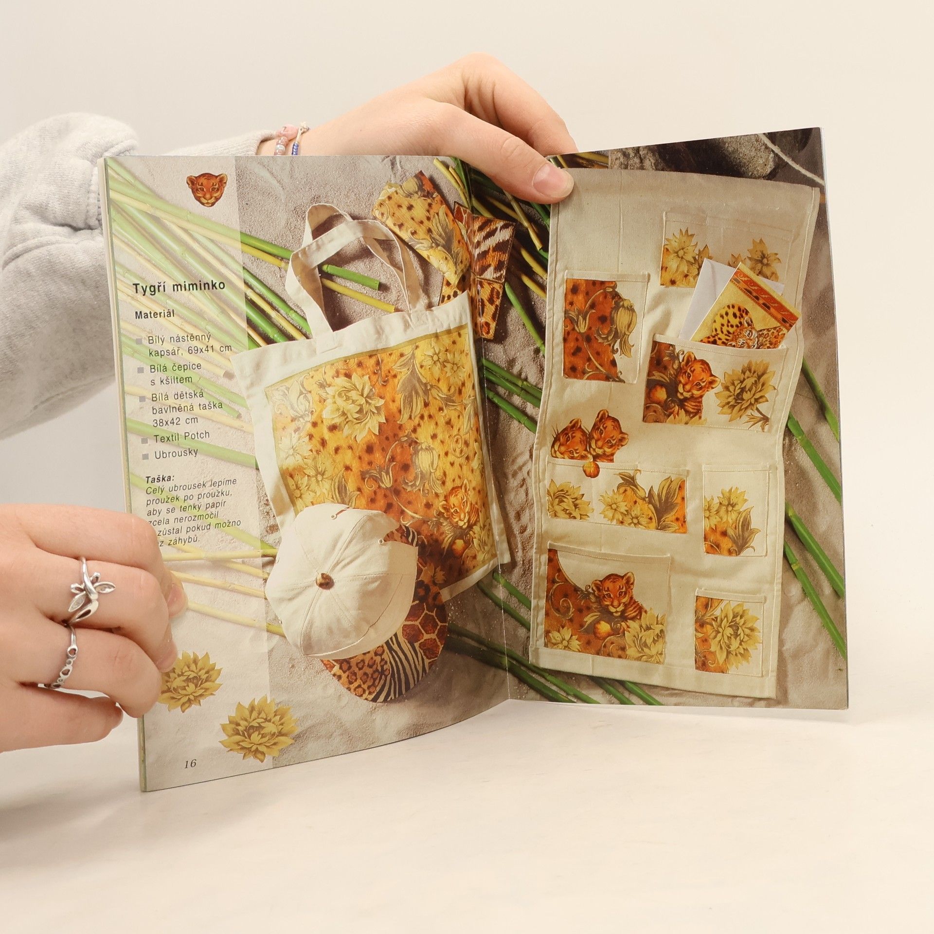 Nákupní tašky, chňapky a kuchyňské zástěry, povlaky na polštáře, kravaty a klobouky.