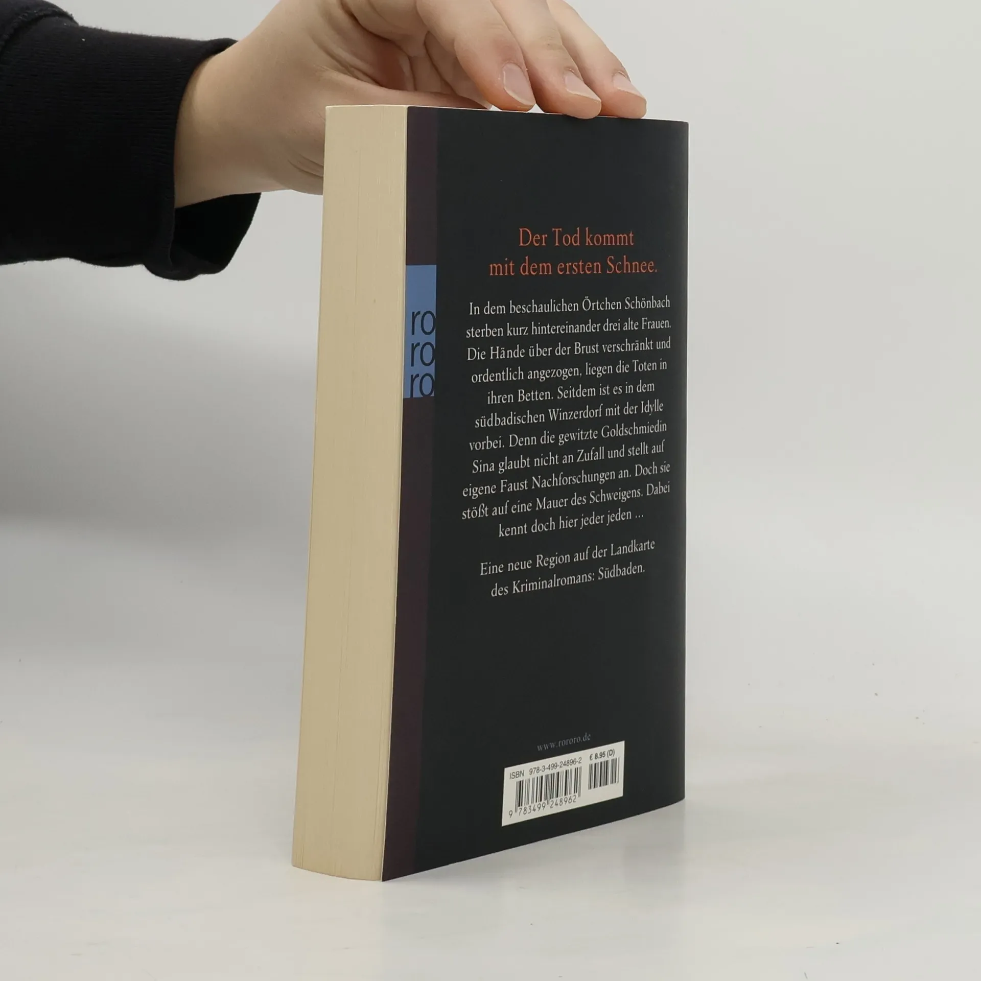 Der Tod kommt mit dem ersten Schnee In dem beschaulichen Örtchen Schönbach sterben kurz hintereinander drei alte Frauen. Die Hände über der Brust verschränkt und ordentlich angezogen, liegen die Toten in ihren Betten. Seitdem ist es in dem südbadischen Winzerdorf mit der Idylle vorbei. Denn die gewitzte Goldschmiedin Sina glaubt nicht an Zufall und stellt auf eigene Faust Nachforschungen an. Doch sie stößt auf eine Mauer des Schweigens. Dabei kennt doch hier jeder jeden ... Eine neue Region auf der Landkarte des Kriminalromans: Südbaden.