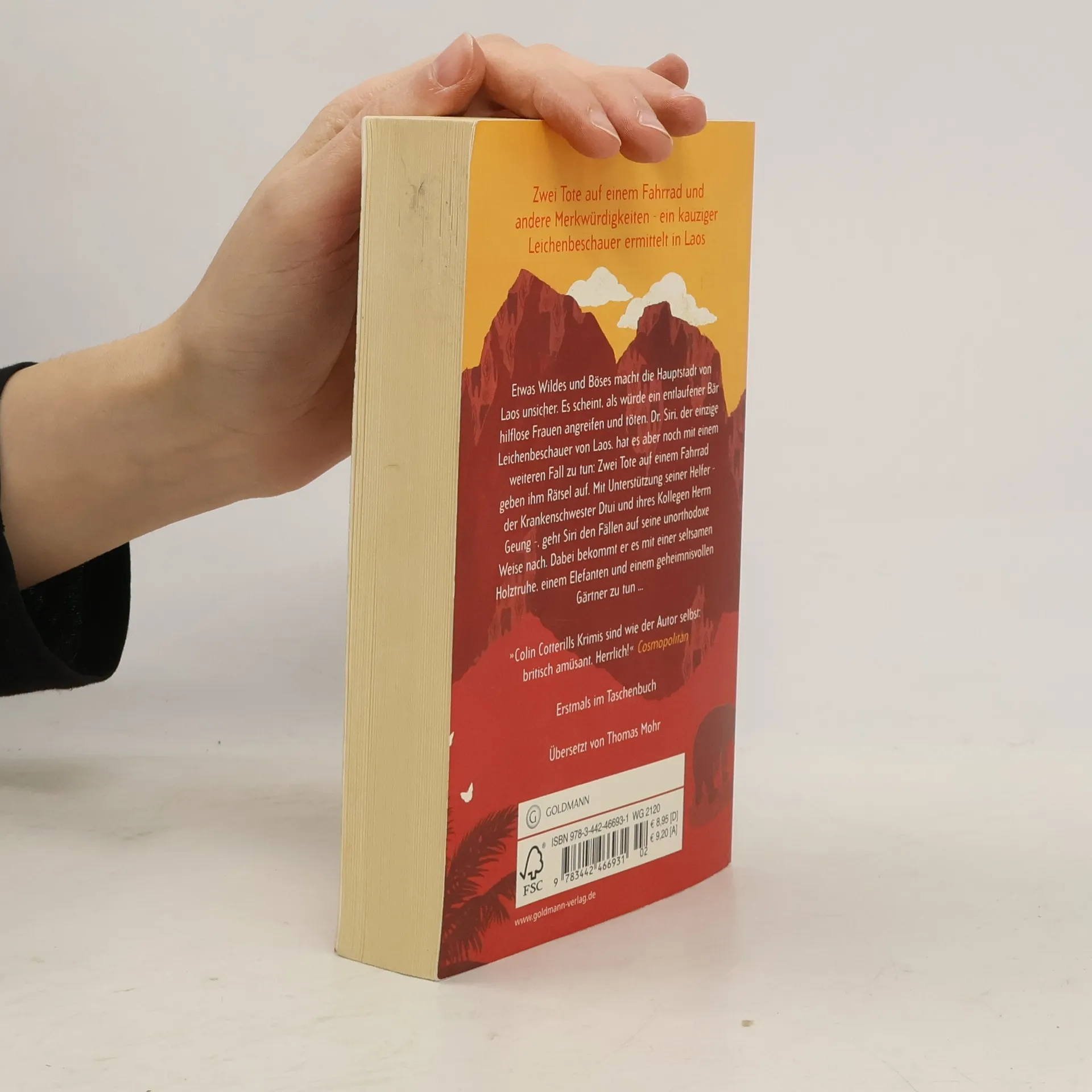 Mysteriöse Todesfälle im exotischen Laos führen Dr. Siri diesmal in die alte Königsstadt Luang Prabang Etwas Wildes und Böses macht die Hauptstadt von Laos unsicher. Es scheint, als würde ein entlaufener Bär hilf lose Frauen angreifen und töten. Dr. Siri, der einzige Leichenbeschauer von Laos, hat es aber noch mit einem weiteren Fall zu tun: Auch zwei Tote auf einem Fahrrad geben ihm Rätsel auf. Mit Unterstützung seiner Helfer, der Krankenschwester Dtui und ihres Kollegen Herrn Geung, geht Siri den Todesfällen auf gewohnt unorthodoxe Weise nach. Dabei bekommt er es mit einer seltsamen Holztruhe, einem toten Elefanten und einem geheimnisvollen Gärtner zu tun …Gewitzt, weise, eigenwillig. Dr. Siri ist ein ganz neuer Charakter im Krimi-Genre.