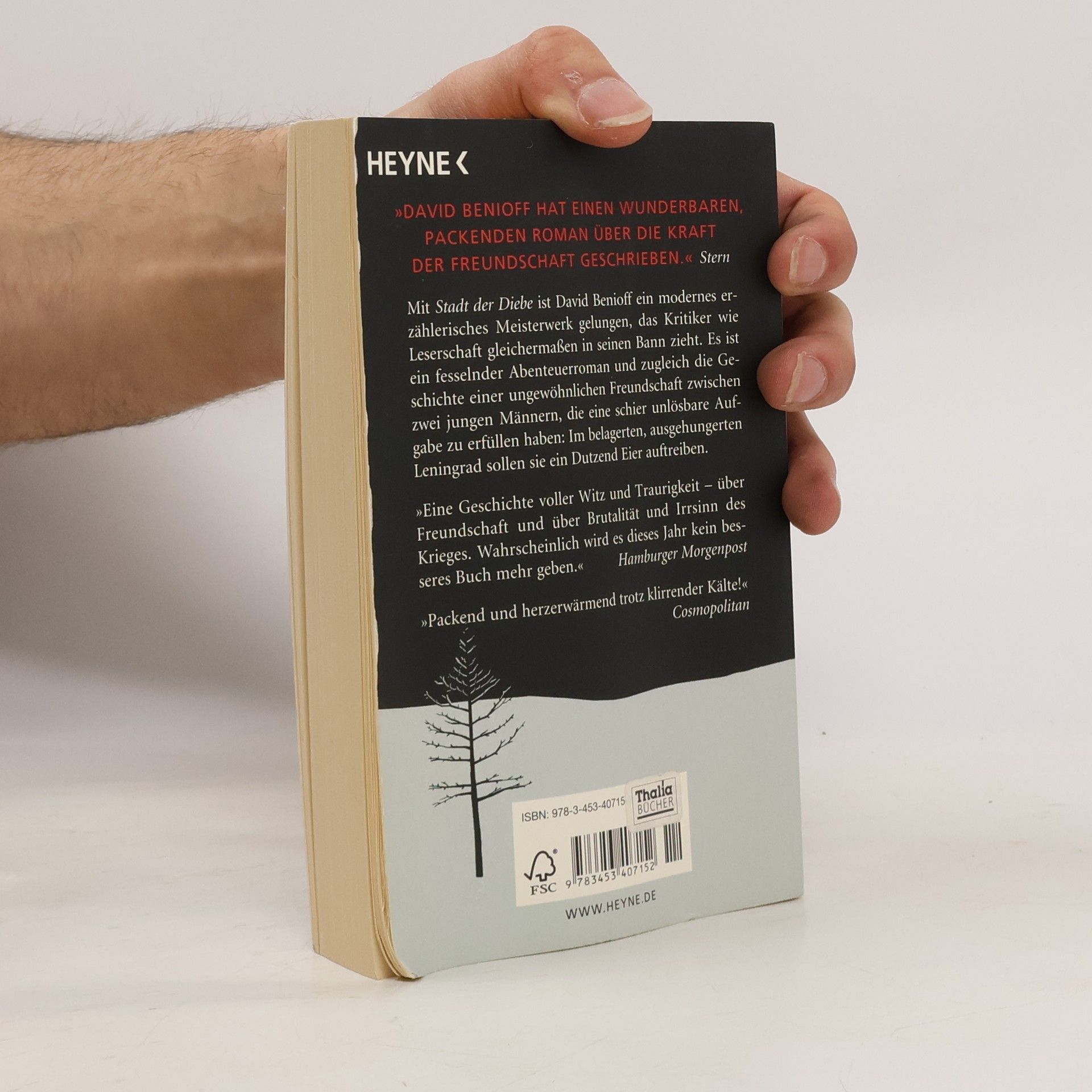 Vom erfolgreichen Drehbuchautor zu einem der größten jungen Erzähltalente Amerikas Mit Stadt der Diebe gelang David Benioff ein modernes erzählerisches Meisterwerk, das Kritiker wie Leserschaft gleichermaßen in seinen Bann zog. Es ist ein fesselnder Abenteuerroman und zugleich die Geschichte einer ungewöhnlichen Freundschaft zwischen zwei jungen Männern, die eine schier unlösbare Aufgabe zu erfüllen haben: Im belagerten, ausgehungerten Leningrad sollen sie ein Dutzend Eier auftreiben.