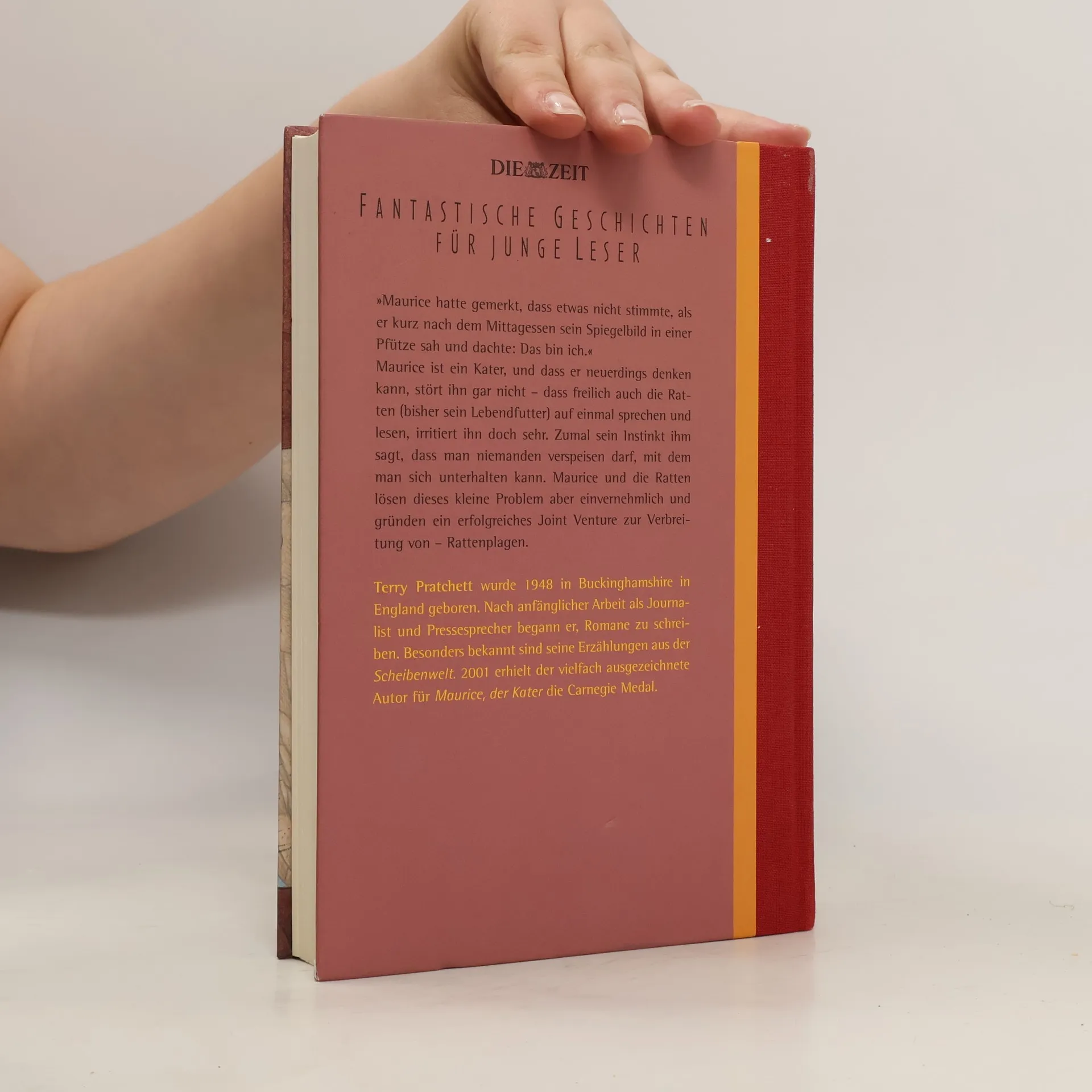 »Maurice hatte gemerkt, dass etwas nicht stimmte, als er kurz nach dem Mittagessen sein Spiegelbild in einer Pfütze sah und dachte: Das bin ich.«§Maurice ist ein Kater, und dass er neuerdings denken kann, stört ihn gar nicht - dass freilich auch die Ratten (bisher sein Lebendfutter) auf einmal sprechen und lesen, irritiert ihn doch sehr. Zumal sein Instinkt ihm sagt, dass man niemanden verspeisen darf, mit dem man sich unterhalten kann. Maurice und die Ratten lösen dieses kleine Problem aber einvernehmlich und gründen ein erfolgreiches Joint Venture zur Verbreitung von - Rattenplagen.