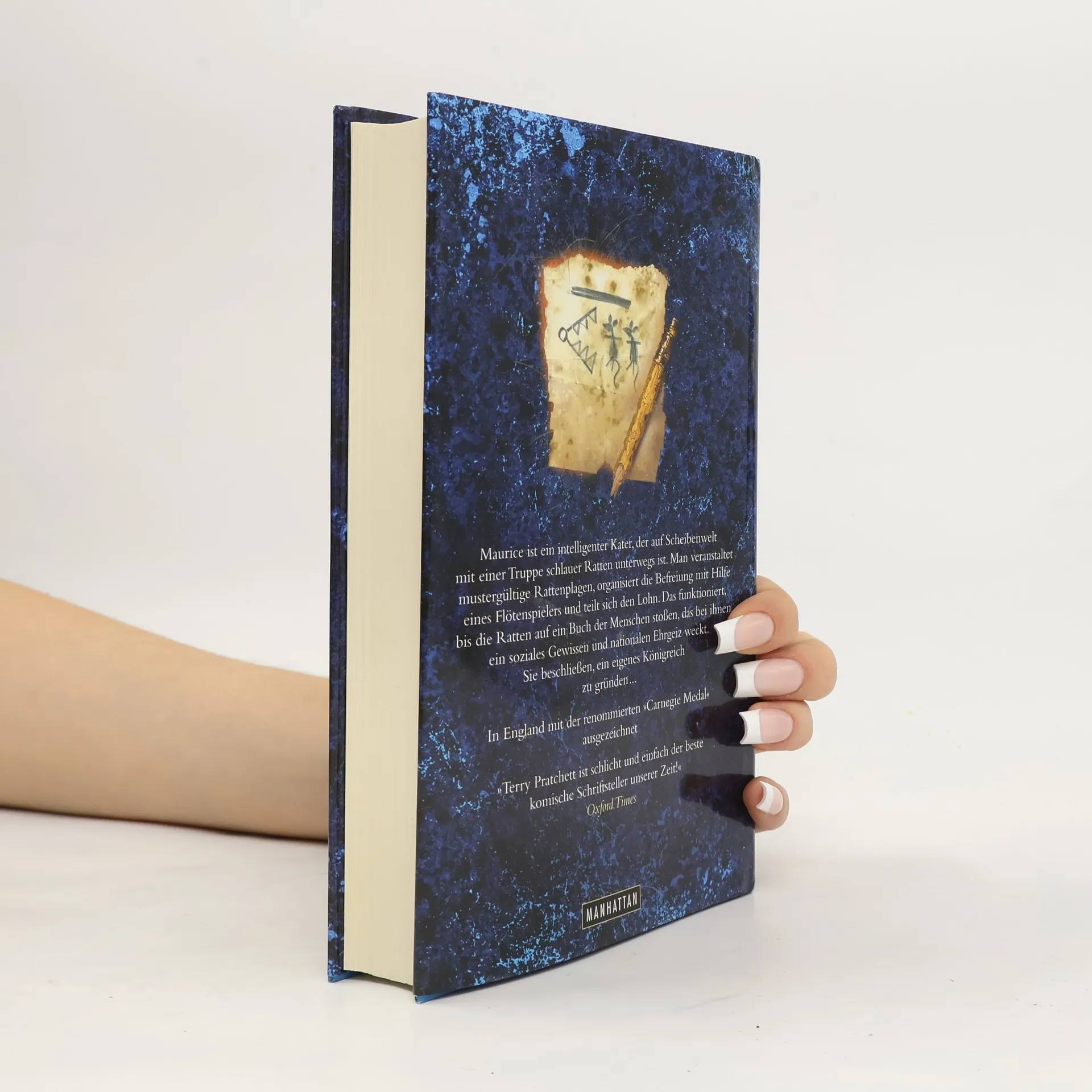 Studenten und Gelehrte der Unsichtbaren Universität sollten vorsichtiger mit ihren Abfällen umgehen, denn ein Großteil landet nicht auf Müllhalden, sondern in den Mägen hungriger Tiere. Dies hat manchmal sonderbare Auswirkungen: Die Tiere entwickeln ein Bewusstsein und können sprechen! So ergeht es dem Kater Maurice und seinen cleveren Freunden, den Ratten. Maurice, ein kluger Kater, beschließt, seinen Lebensunterhalt stressfreier zu verdienen. Er schickt seine willfährigen Kumpel in ein Dorf und stellt sich den Bewohnern als freundlicher Helfer vor, der ihre Häuser von der Rattenplage befreien kann – gegen Bezahlung. Doch die kleinen Nager haben bald genug, immer nur dem großen bösen Kater zu gehorchen, und ein schlechtes Gewissen regt sich in ihnen. Die Situation eskaliert, als sie in ein Dorf geraten, das von Rattenfängern wimmelt, obwohl keine Ratten zu sehen sind. Der Roman wird im englischsprachigen Raum als Jugendbuch vermarktet, was eine unnötige Einschränkung darstellt. Zwar ist die Geschichte weniger vielschichtig als andere Abenteuer aus der Scheibenwelt, doch wie bei Pratchett üblich, haben die wilden Späße einen tieferen Sinn. Wer es schafft, aus einer Gruppe neunmalkluger Ratten sympathische Protagonisten zu machen, hat seine Millionen Leser mehr als verdient!