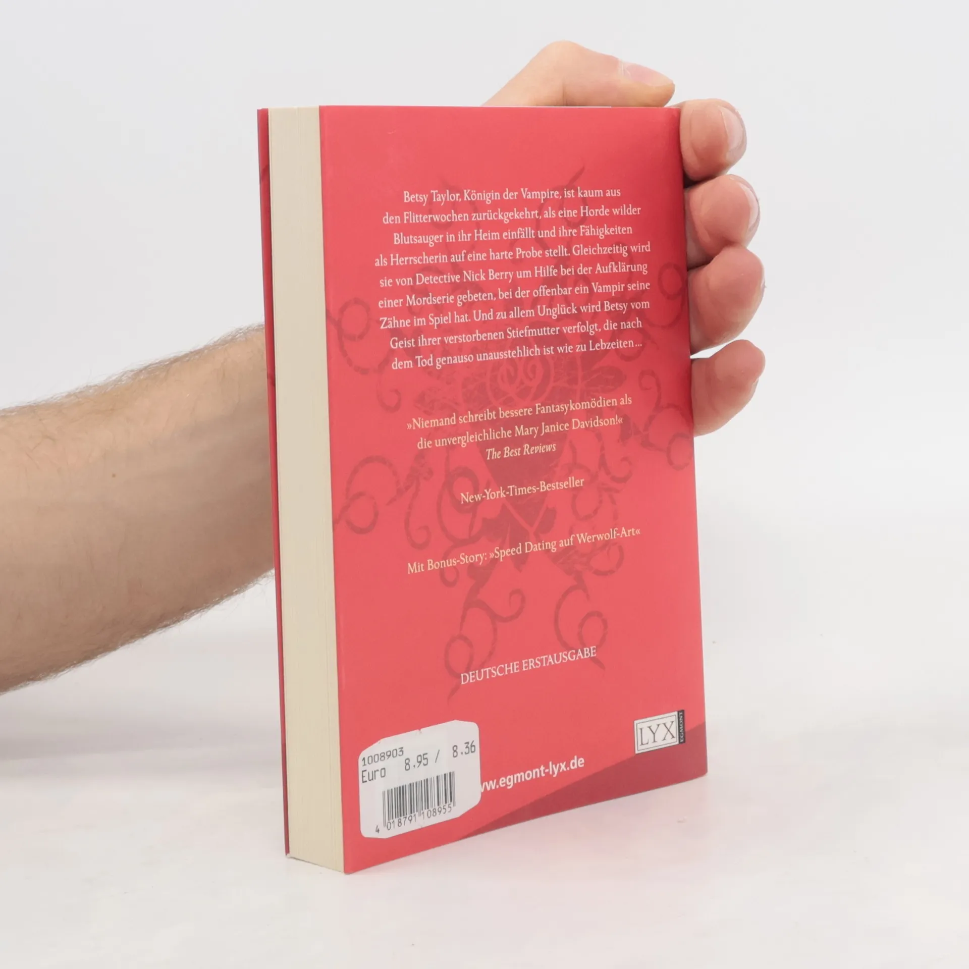 Betsy Taylor, Königin der Vampire, ist kaum aus den Flitterwochen zurückgekehrt, als eine Horde wilder Blutsauger in ihr Haus einfällt und ihre Fähigkeiten als Herrscherin auf eine harte Probe stellt. Kurz darauf bittet Detektiv Nick Berry sie um Hilfe bei der Aufklärung einiger schrecklicher Mordfälle, bei denen offenbar ein Vampir die Hand im Spiel hatte. Zu allem Unglück wird Betsy außerdem vom Geist ihrer unlängst verstorbenen Stiefmutter verfolgt, die nach dem Tod noch viel unausstehlicher ist als zu Lebzeiten. Und auch das Eheleben mit ihrem frisch angetrauten Gatten Eric verläuft alles andere als harmonisch. Siebter Band der Betsy-Taylor-Reihe. Mit Bonus-Story „Speed Dating auf Werwolf-Art“
