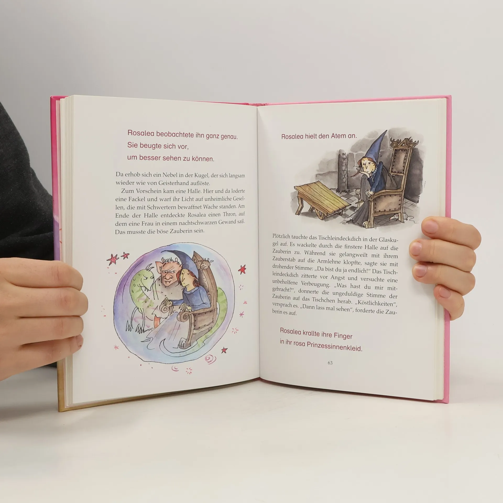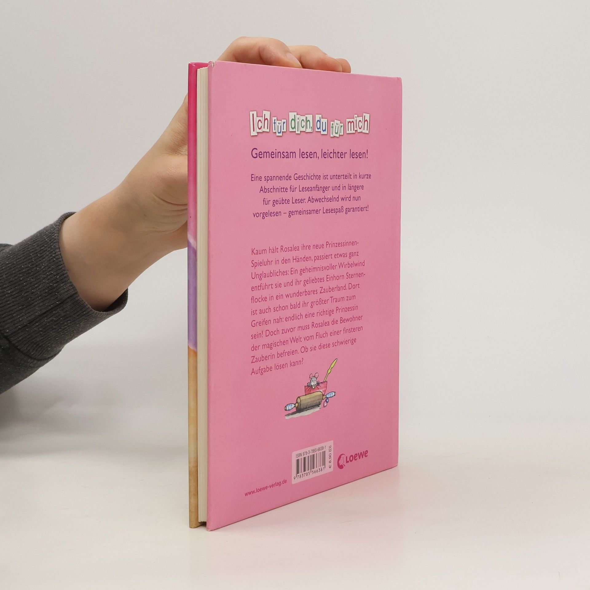 Kaum hält Rosalea ihre neue Prinzessinnen-Spieluhr in den Händen, passiert etwas ganz und gar Unglaubliches: Ein geheimnisvoller Wirbelwind entführt sie und ihr geliebtes Einhorn Sternenflocke in ein wunderbares Zauberland. Dort ist auch schon bald ihr größter Traum zum Greifen nah: endlich eine richtige Prinzessin sein! Doch zuvor muss Rosalea die Bewohner der magischen Welt vom Fluch einer finsteren Zauberin befreien. Und das ist eine schwierige Aufgabe. Aber zum Glück hat Rosalea für solche Fälle noch ein Geheimrezept als Trumpf im Ärmel. Wie in einem Rollenspiel wird diese abgeschlossene Geschichte in mehreren Kapiteln gelesen. Während Erwachsene den Part des Erzählers und anderer Figuren vorlesen, übernimmt der Leseanfänger die Rolle des Protagonisten und liest dessen Part vor. Durch das gemeinsame Lesen und Betrachten der liebenswerten Illustrationen wird so der Spaß am Lesen geweckt.