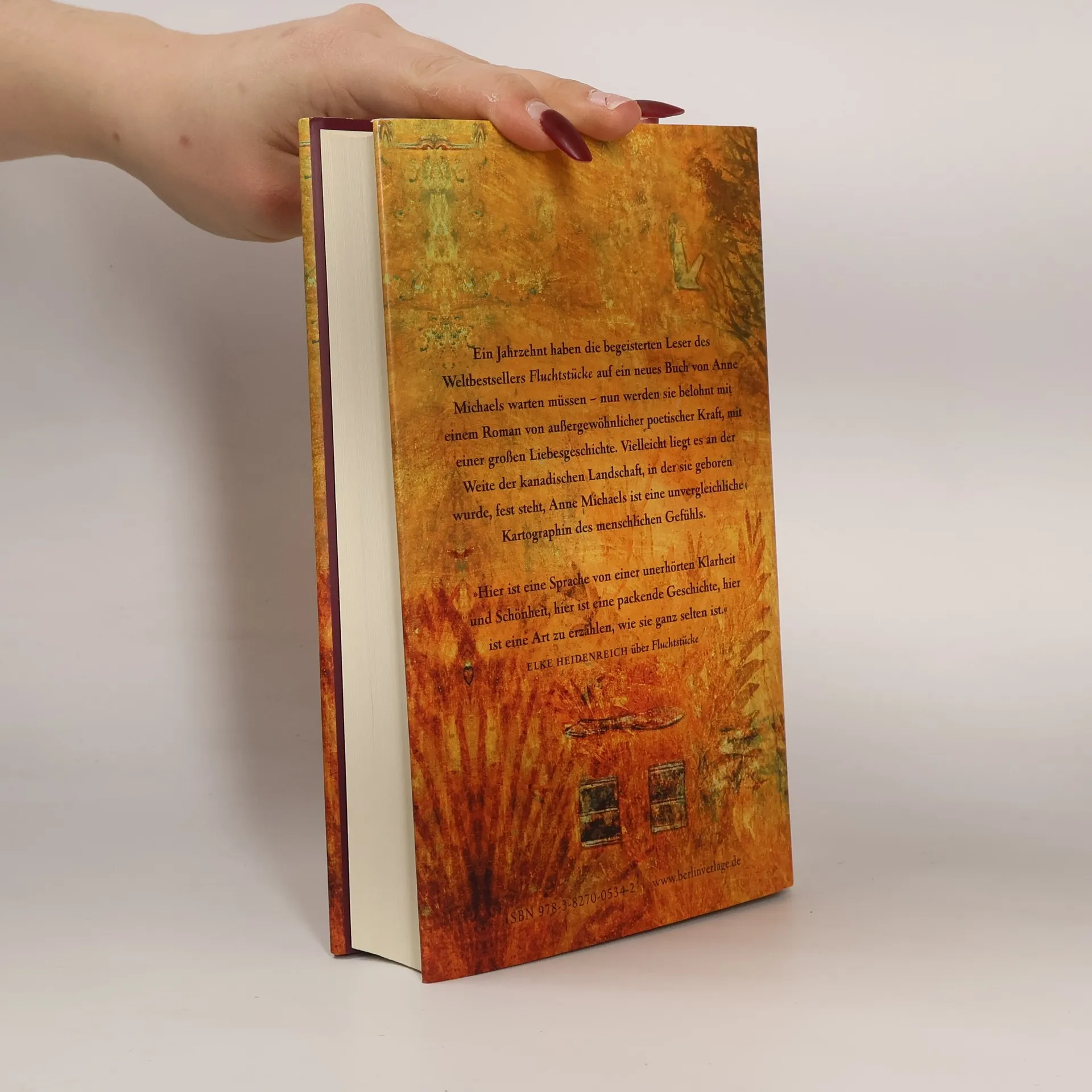Ein Jahrzehnt haben die Leser auf ein neues Werk von Anne Michaels gewartet, und nun werden sie mit einem Roman von außergewöhnlicher poetischer Kraft belohnt, der eine große Liebesgeschichte erzählt. Jean durchstreift das verwaiste Bett des St.-Lorenz-Stroms und sammelt Pflanzen, die letzte Zeugen einer Landschaft sind, die bald nicht mehr existieren wird. Avery, ein Ingenieur, der an der Flussbegradigung beteiligt war, erkennt nun die Tragweite seines Eingriffs. Bei ihrer ersten Begegnung ist es Liebe auf den ersten Blick. Gemeinsam reisen sie nach Ägypten, wo sie in einem Hausboot auf dem Nil leben, der bald zum gewaltigen Nassansee gestaut werden soll. Averys Aufgabe ist es, den Abu Simbel Tempel zu versetzen, um ihn vor dem Versinken in der künstlichen Flut zu bewahren, die ganze Dörfer bedroht. Die Fragwürdigkeit dieses Rettungsaktes wird beiden mit jedem Tag klarer, doch sie finden keine Worte für ihr Unbehagen. Stattdessen flüchten sie sich in ihre Nähe und Liebe. Nacht für Nacht erzählen sie sich von ihrer Herkunft und ihren Familien, verlieren sich jedoch, bevor ein schwerer Verlust alles verändert. In einer poetischen Sprache, die ihr Debüt zum Bestseller machte, thematisiert Anne Michaels Vertreibung, Neuanfang, Trauer und die rettende Kraft der Liebe.