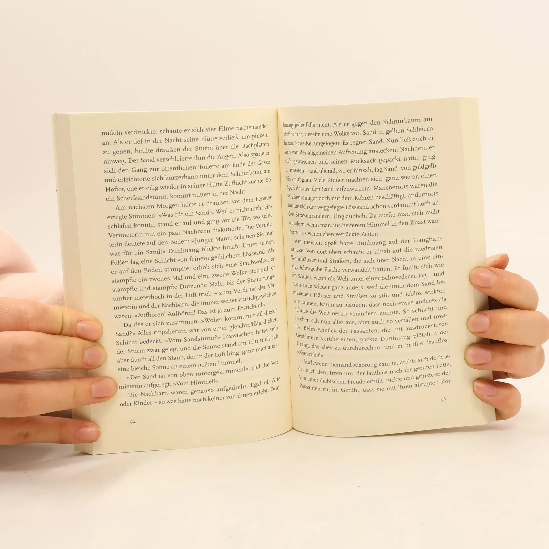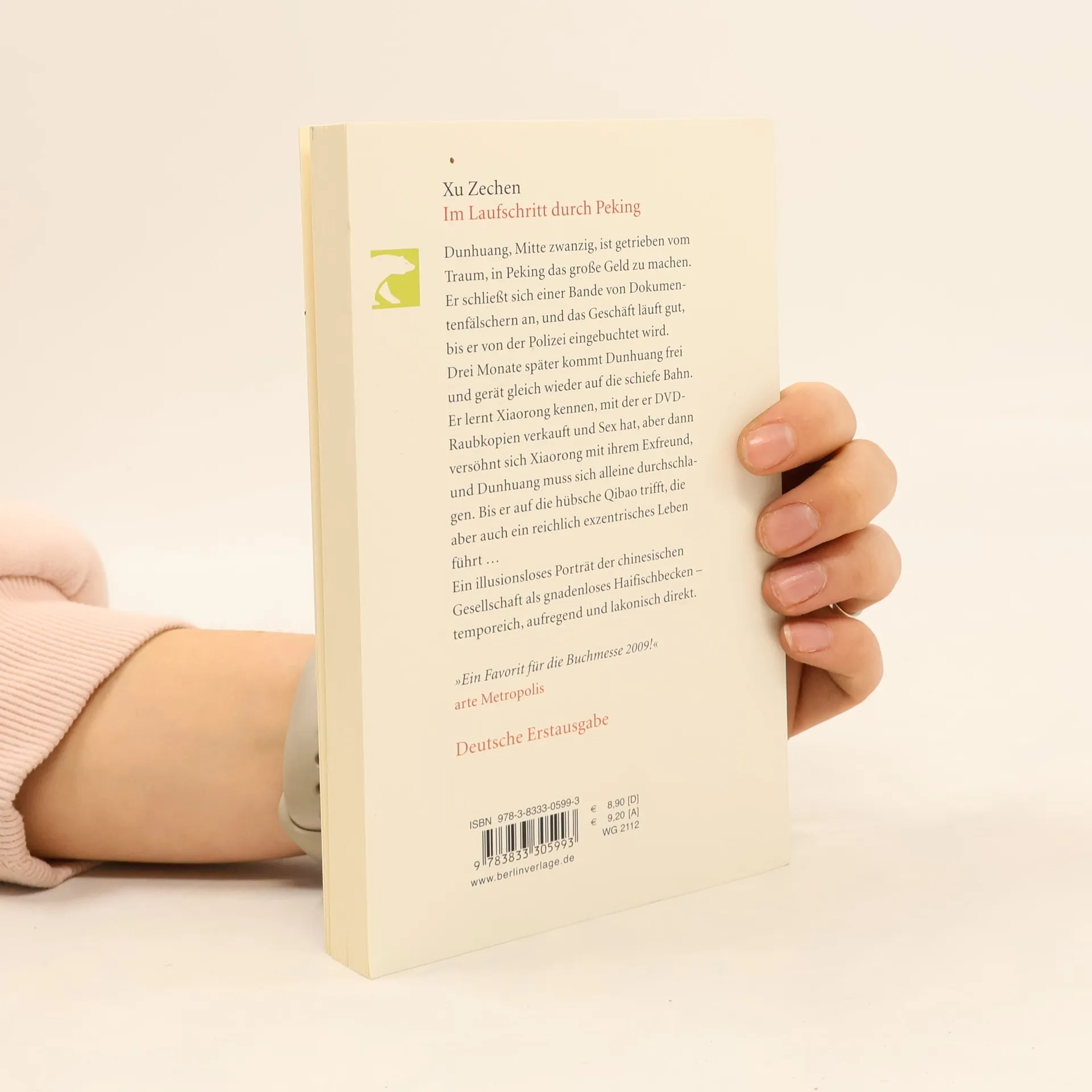 „Am meisten Spaß hatte Dunhuang auf der Hangtian-Brücke. Von dort schaute er hinab auf die niedrigen Wohnhäuser und Straßen, die sich über Nacht in eine einzige lehmgelbe Fläche verwandelt hatten. Er fühlte sich wie im Winter, wenn die Welt unter einer Schneedecke lag - und doch auch wieder ganz anders, weil die unter dem Sand begrabenen Häuser und Straßen so still und leblos wirkten wie Ruinen.“ Dunhuang ist Mitte zwanzig. Getrieben vom Traum, in der Hauptstadt das große Geld zu machen, reist er nach Peking. Er schließt sich einer Bande von Dokumentenfälschern an, mit seinem Freund Baoding arbeitet er als Anwerber und Auslieferer auf der Straße. Das Geschäft läuft gut, bis sie unvorsichtig werden und die Polizei sie einbuchtet. Drei Monate später kommt Dunhuang frei und gerät gleich wieder auf die schiefe Bahn. Er verkauft Pornos und trifft die hübsche Qibao, sie werden ein Paar. Aber Qibao führt ein reichlich exzentrisches Leben und wird verhaftet. Im Laufschritt durch Peking ist ein illusionsloses Porträt der chinesischen Gesellschaft als gnadenloses Haifischbecken - temporeich, aufregend und lakonisch direkt.