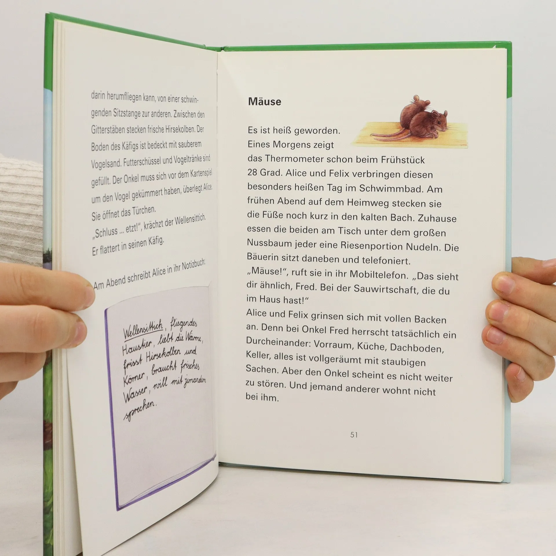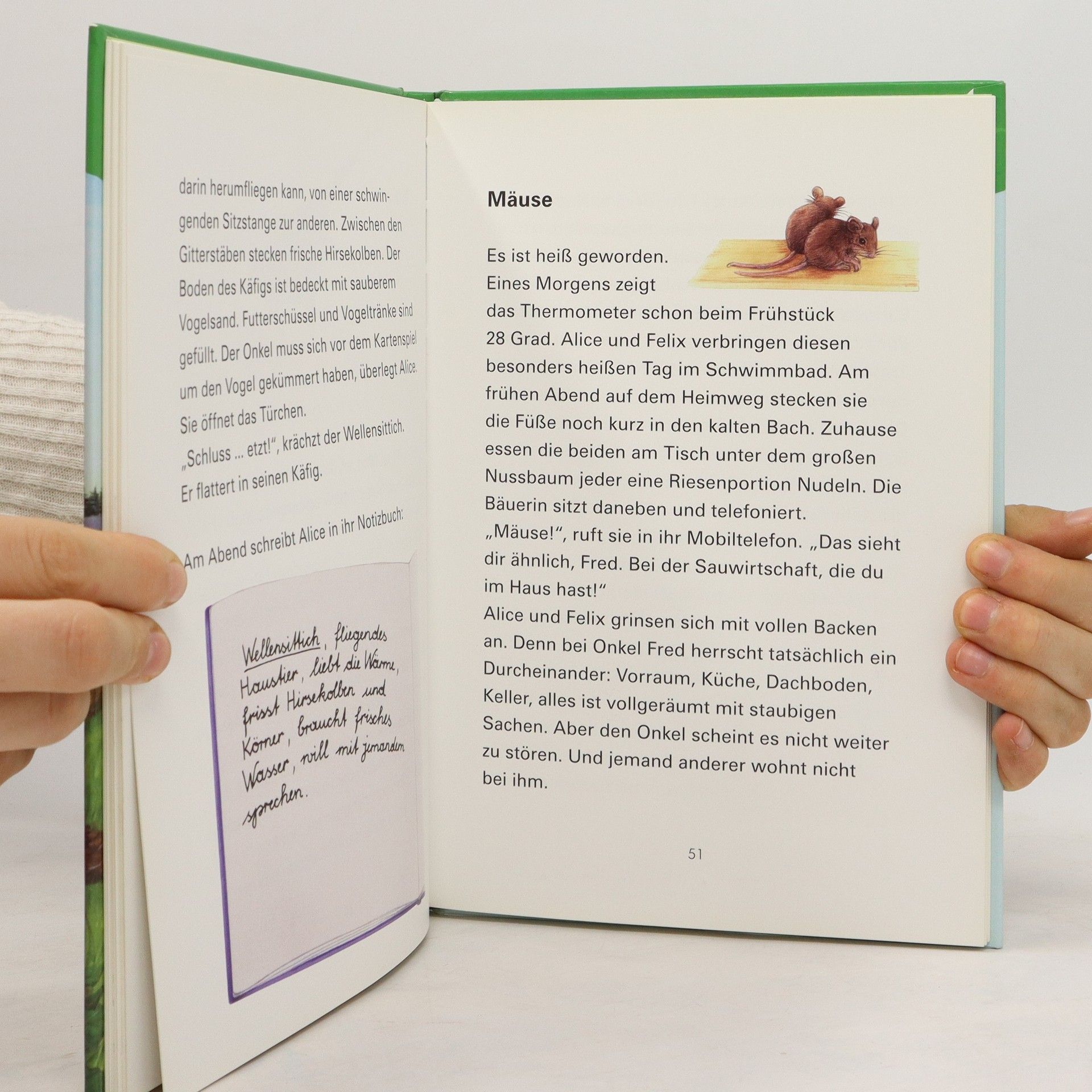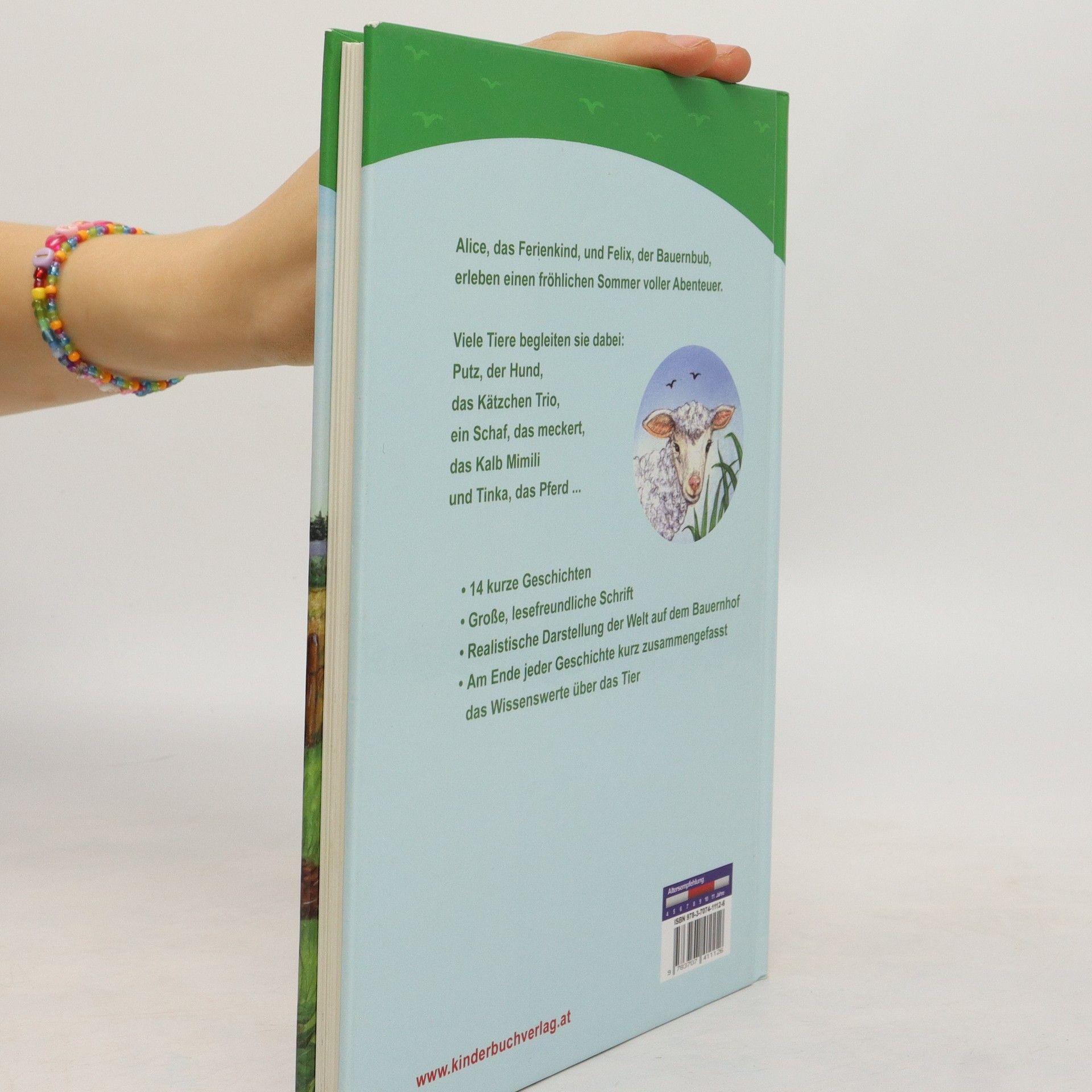 Alice, das Ferienkind, und Felix, der Bauernbub, erleben einen fröhlichen Sommer voller Abenteuer. Viele Tiere begleiten sie dabei: Putz, der Hund, das Kätzchen Trio, ein Schaf, das meckert, das Kalb Mimili und Tinka, das Pferd. 14 kurze Geschichten in großer und lesefreundlicher Schrift geben eine realistische Darstellung des Lebens auf dem Bauernhof. Am Ende jeder Geschichte ist Wissenswertes über das Tier kurz zusammengefasst.
