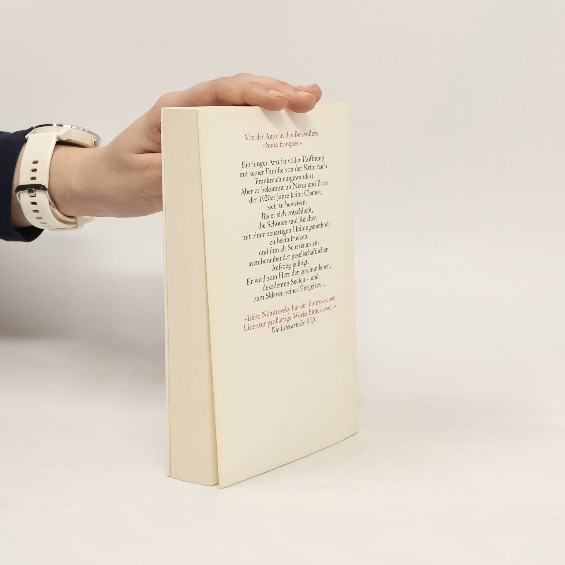 Ein genialer Außenseiter auf der Suche nach Anerkennung im Paris der 1920er Jahre. Ein junger Arzt ist voller Hoffnung mit seiner Familie von der Krim nach Frankreich eingewandert. Aber er bekommt im Nizza und Paris der 1920er Jahre keine Chance, sich zu beweisen. Bis er sich entschließt, die Schönen und Reichen mit einer neuartigen Heilungsmethode zu beeindrucken und ihm als Scharlatan ein atemberaubender gesellschaftlicher Aufstieg gelingt. Er wird zum Herr der geschundenen, dekadenten Seelen – und zum Sklaven seines Ehrgeizes … Von der Autorin des Bestsellers „Suite française“.