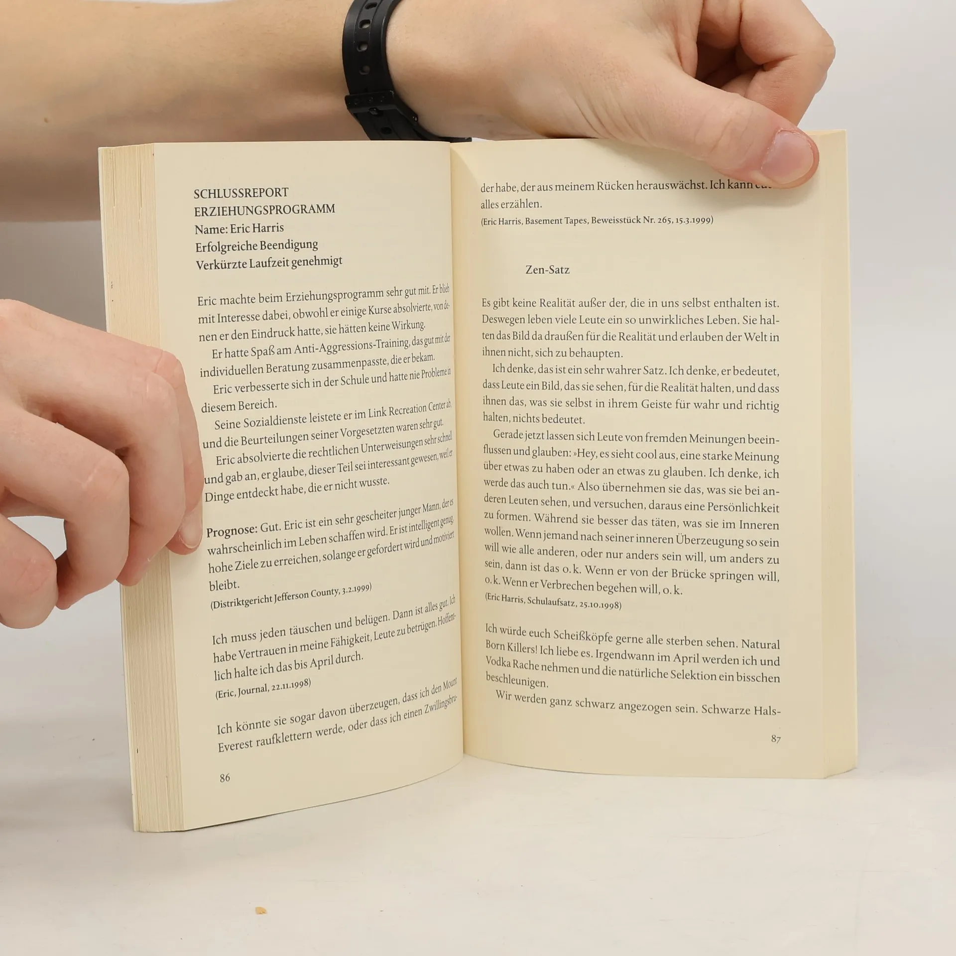 Das faszinierende Psychogramm zweier Jugendlicher, die zu Amokläufern wurden „Ich bin voller Hass – und das liebe ich“ erzählt die zutiefst erschütternde und bewegende Geschichte des Attentats an der Columbine Highschool in Littleton. Und zwar anhand von Originaldokumenten: Tagebüchern, Interneteinträgen, Verhörprotokollen und Aussagen von Beteiligten. Ein Buch, das den Blick öffnet für das Ungeheuerliche einer Tat, die von den Tätern bis ins kleinste Detail in der Fantasie, in literarischen Szenen, Tagebüchern, auf Internetseiten und in Videos ausgebildet wurde, bis sie schließlich katastrophale Realität wurde.