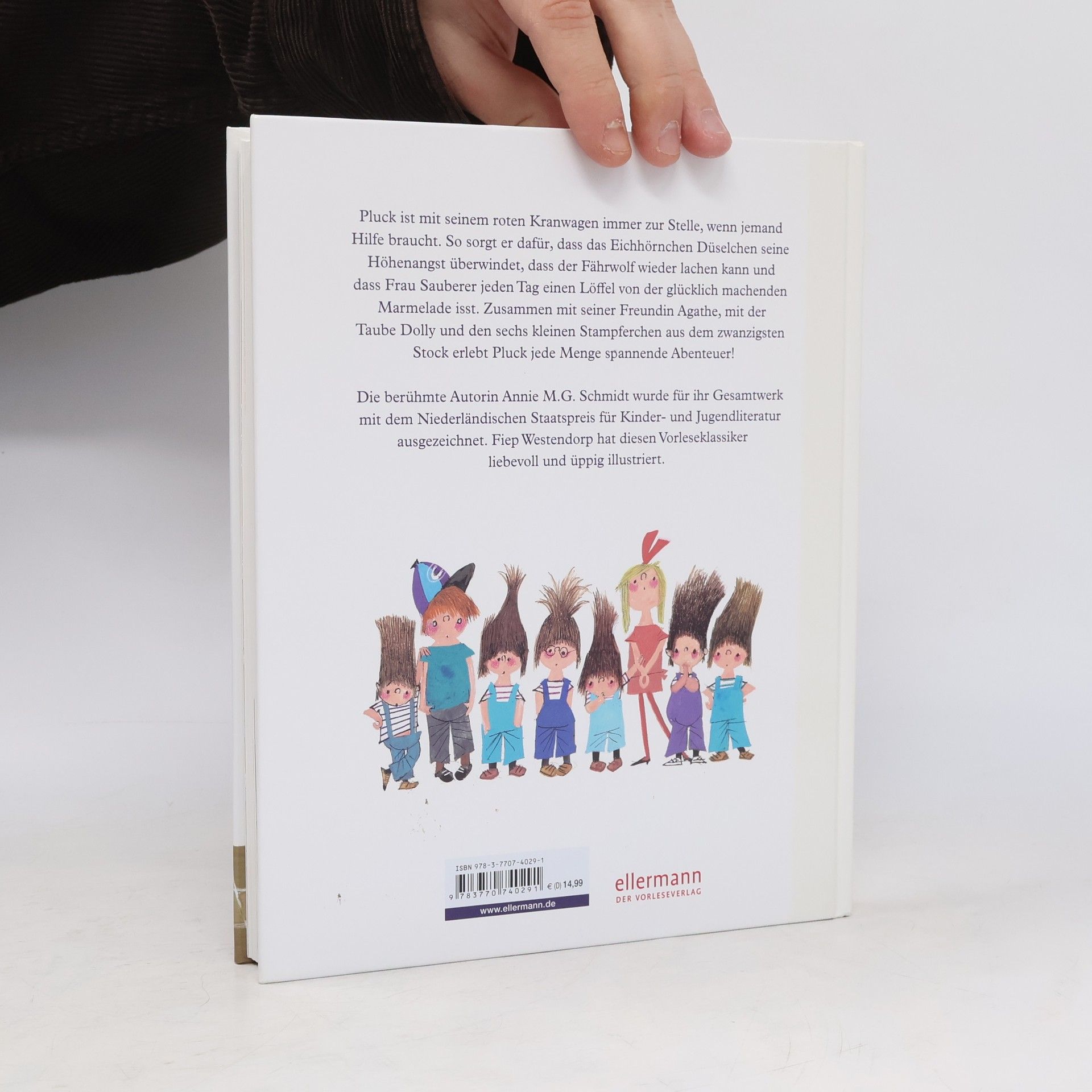 Tatütata - Pluck ist da! Aus seinem Wohntürmchen auf einem Hochhaus hat Pluck einen tollen Überblick. Und dank seines roten Kranwagens ist er stets zur Stelle, wenn jemand Hilfe braucht. So erlebt er mit den sechs kleinen Stampferchen aus dem zwanzigsten Stock, Freundin Agathe und der Taube Dolly jede Menge Abenteuer. Denn es gibt viel zu tun: Eichhörnchen Düselchen helfen, seine Höhenangst zu verlieren, den Fährwolf wieder zum Lachen bringen und dafür sorgen, dass Frau Sauberer täglich einen Löffel von der glücklich machenden Marmelade isst. Lustige Geschichten mit tollen Charakteren und vielen neuen Illustrationen aus dem Nachlass von Fiep Westendorp. Als liebenswerter Held erobert Pluck Kinderherzen im Sturm.