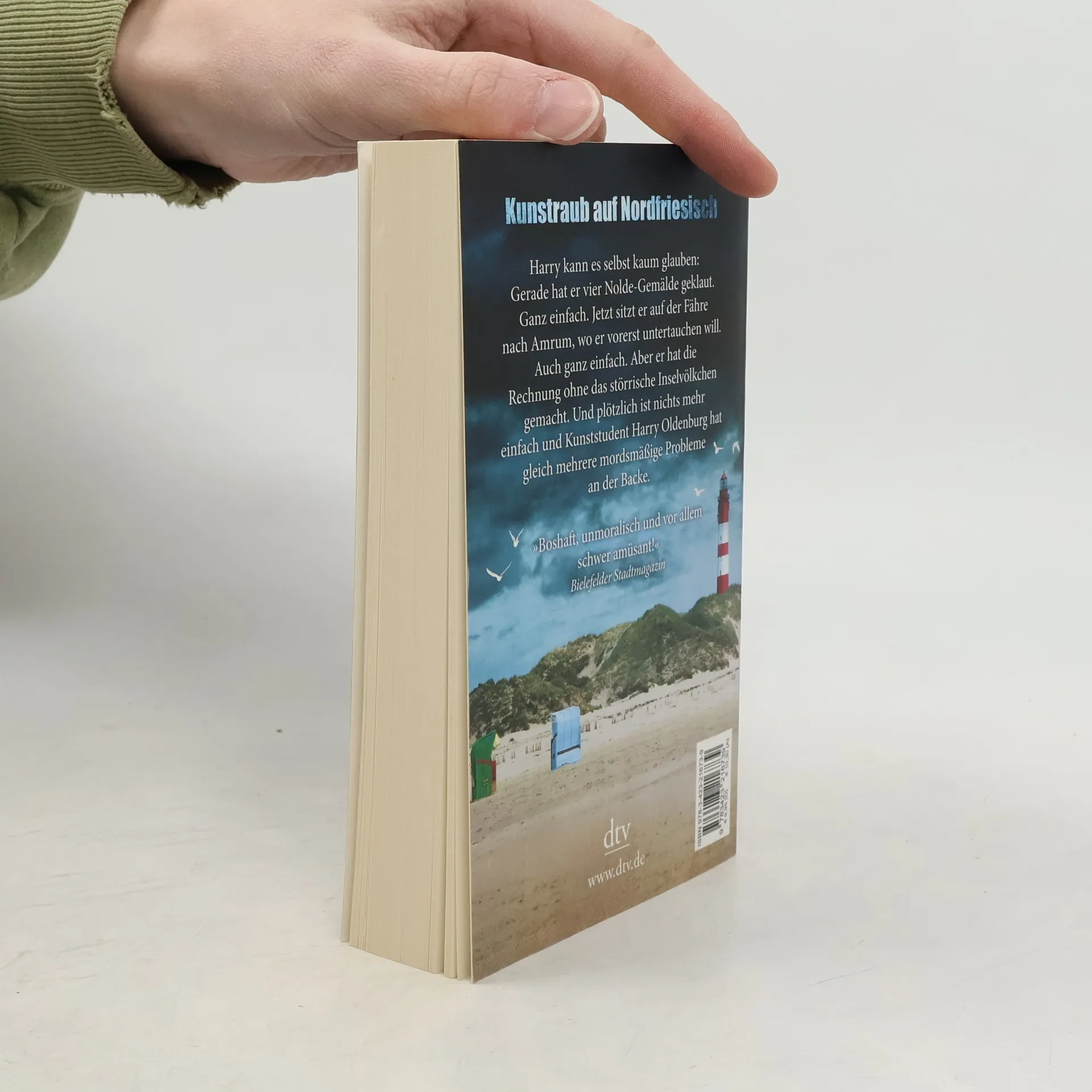 Kunstraub auf Nordfriesisch Kunststudent Harry Oldenburg will der chronischen Ebbe in seiner Kasse Abhilfe verschaffen und klaut diverse Noldes aus dem Museum in Seebüll. Hals über Kopf flüchtet er mit der erstbesten Fähre nach Amrum, wo er vorerst untertauchen will. Doch in der herbstlichen Insel-Idylle sieht sich der schüchterne Harry bald von einem rüpelhaften Fährmann, einer liebestollen Urlauberin und der überaus neugierigen Zimmerwirtin verfolgt. So schnell er sich der unbequemen Mitmenschen entledigen kann, so schwierig gestaltet sich deren Entsorgung. Bald wird Harry das Pflaster auf Amrum zu heiß. Eine dramatische Flucht über die Inseln und das Watt beginnt.