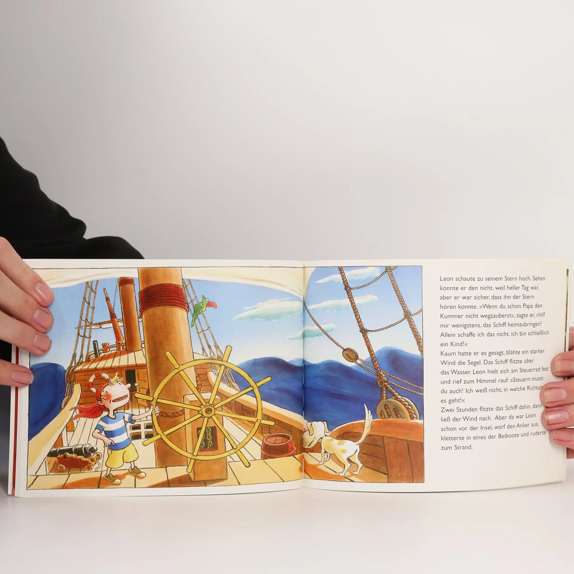 Leons Papa hat mit Kapitän Holzbein gewettet, dass er den legendären Goldschatz findet. Aber daraus scheint nichts zu werden. Bevor sein Papa trübsinnig wird, ergreift Leon die Initiative: Er steuert das Schiff nach Hause und sorgt gemeinsam mit Oma dafür, dass ein dicker Schatz geborgen und ein fettes Schwein gebraten wird. Die Kapitänsehre ist wiederhergestellt!