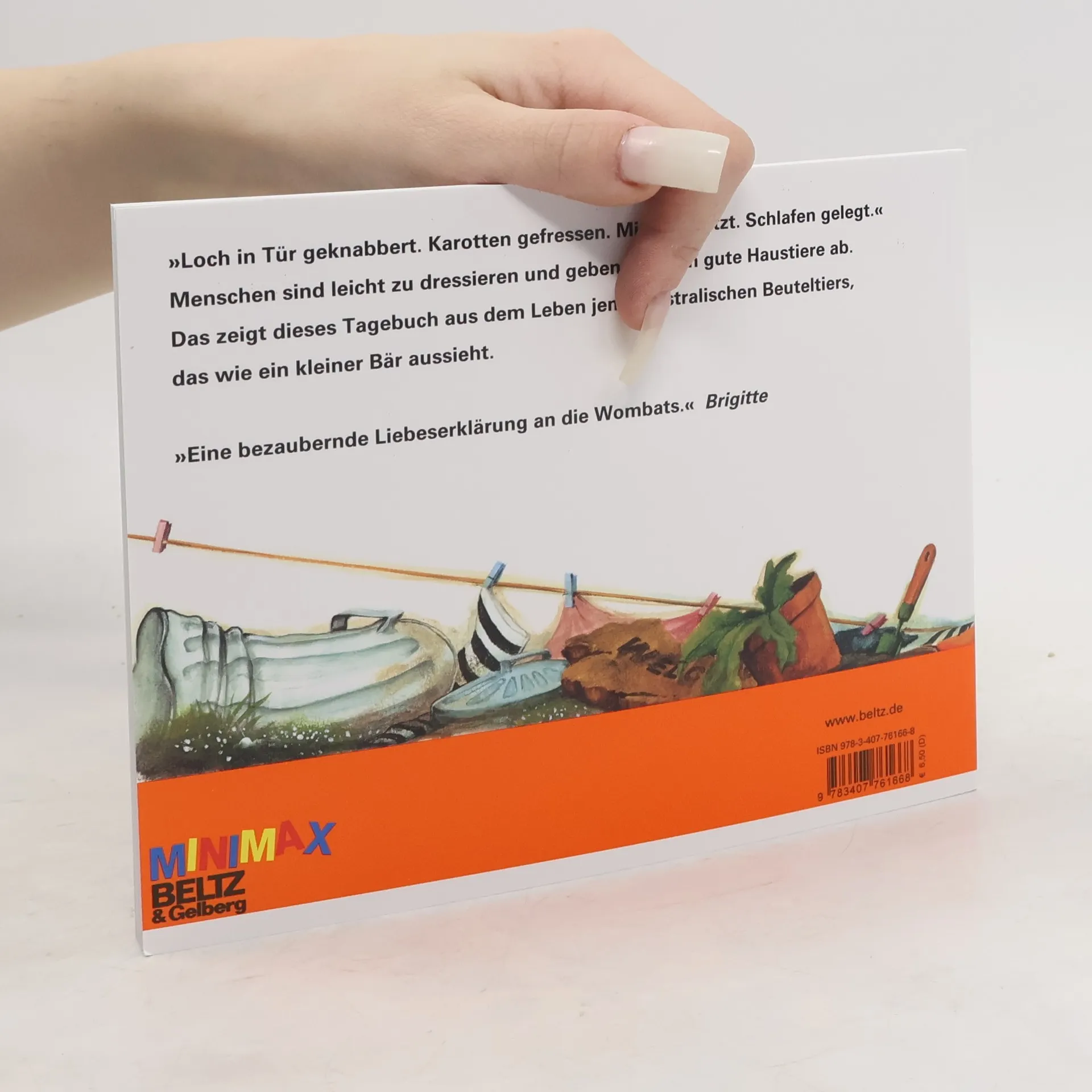 Was ist der Wombat doch für ein eigenartiges Tier: Den ganzen Tag schlafen, Gras fressen und wieder schlafen. Bis er Karotten für sich entdeckt, die doch viel köstlicher sind! Seitdem besucht er seine neuen Menschennachbarn regelmäßig und randaliert so lange, bis er mit Karotten gefüttert wird. Zeigt, wie leicht Menschen zu dressieren sind. und welch gute Haustiere sie abgeben.