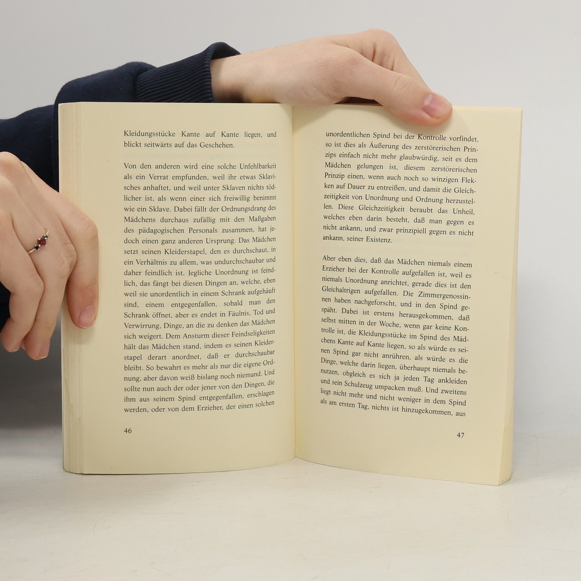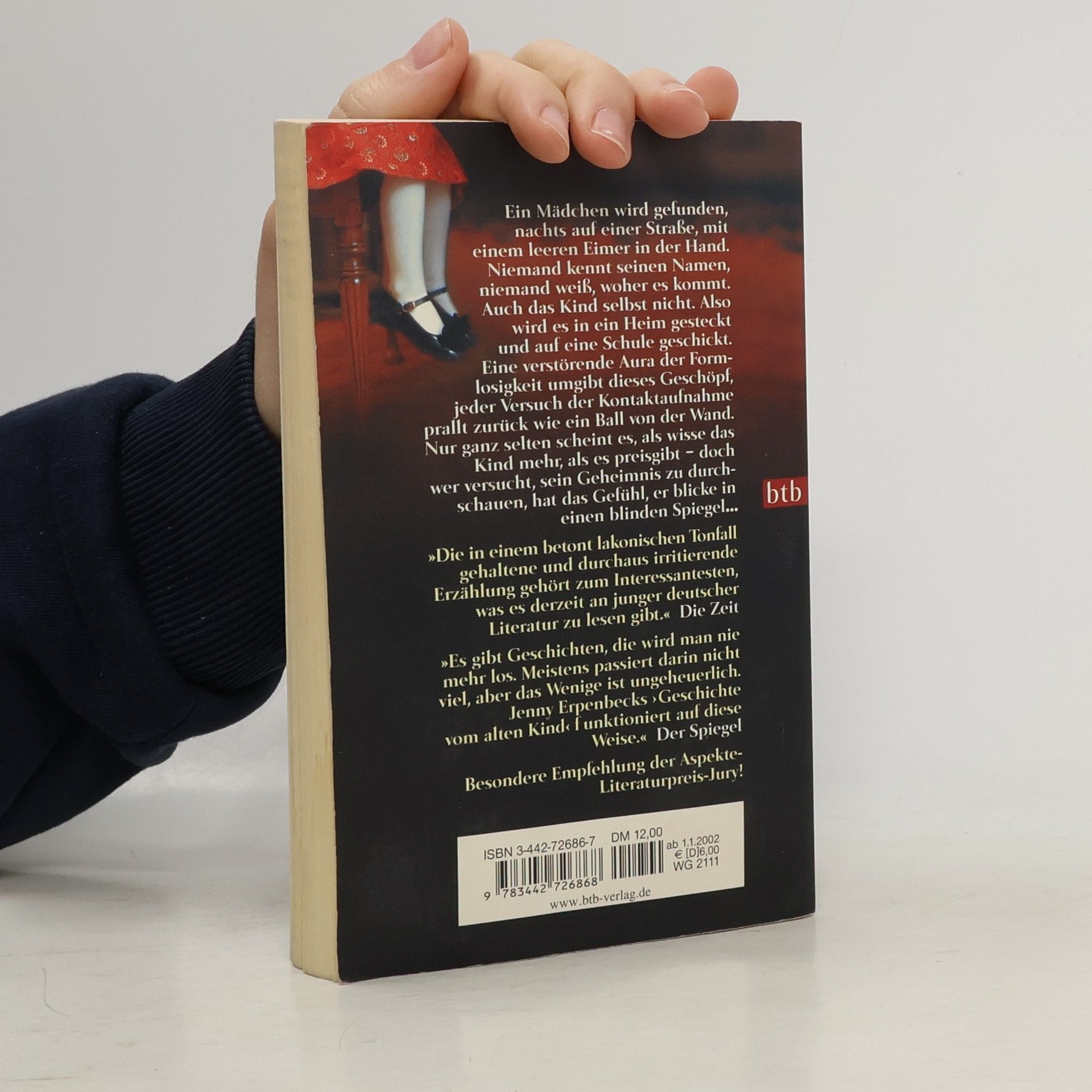 Ein Mädchen wird gefunden, nachts auf einer Straße, einen leeren Eimer hat es in der Hand. Es ist nicht schön noch häßlich, niemand kennt seinen Namen, niemand weiß, woher es kommt, niemand weiß, wer seine Eltern sind. Niemand, auch das Kind selbst nicht. Also wird es in ein Heim gesteckt und auf eine Schule geschickt. Eine verstörende Aura der Formlosigkeit umgibt dieses Geschöpf; jeder Versuch der Kontaktaufnahme prallt zurück wie ein Ball von der Wand. Nur ganz selten scheint es, als wisse das Kind mehr, als es preisgibt – doch wer versucht, sein Geheimnis zu durchschauen, hat das Gefühl, er blicke in einen blinden Spiegel ... In ihrer ersten Veröffentlichung gelingt es Jenny Erpenbeck, der wundersamen Gestalt des alten Kindes eine ganz eigene Sprache zu geben. Eine Sprache, die auf faszinierend-verstörende Weise alles fasst: die Magie der Fremdheit, das Staunen über die Welt, das Geheimnis des Kindes. Mit ihrem hochgelobten Debüt hat sich Jenny Erpenbeck als eine der ganz großen Hoffnungen der jungen deutschen Literatur erwiesen.